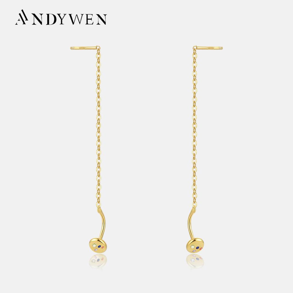ANDYWEN 925 Silver A Pair Of Gold Silver Fashion Long Chain Tassel Stud Earrings Ladies 2023 High Jewelry