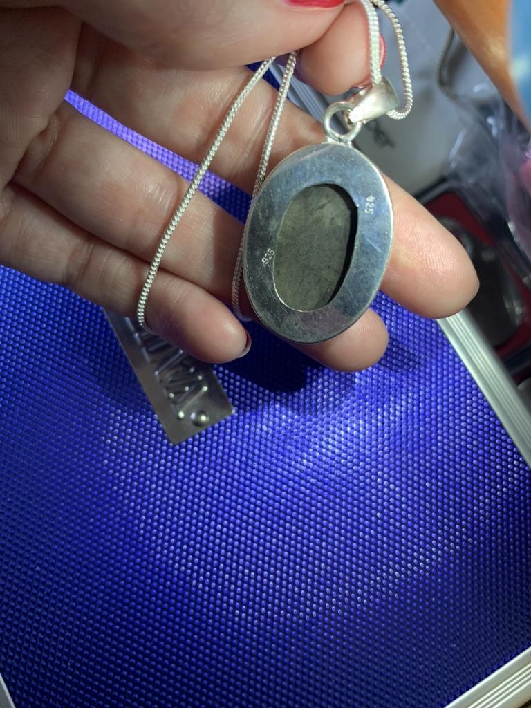 Received the hanger quickly enough. The stone is beautiful, the pattern is a little different from the photo, but it is clear that it is a natural stone. Satisfied I recommend the seller.