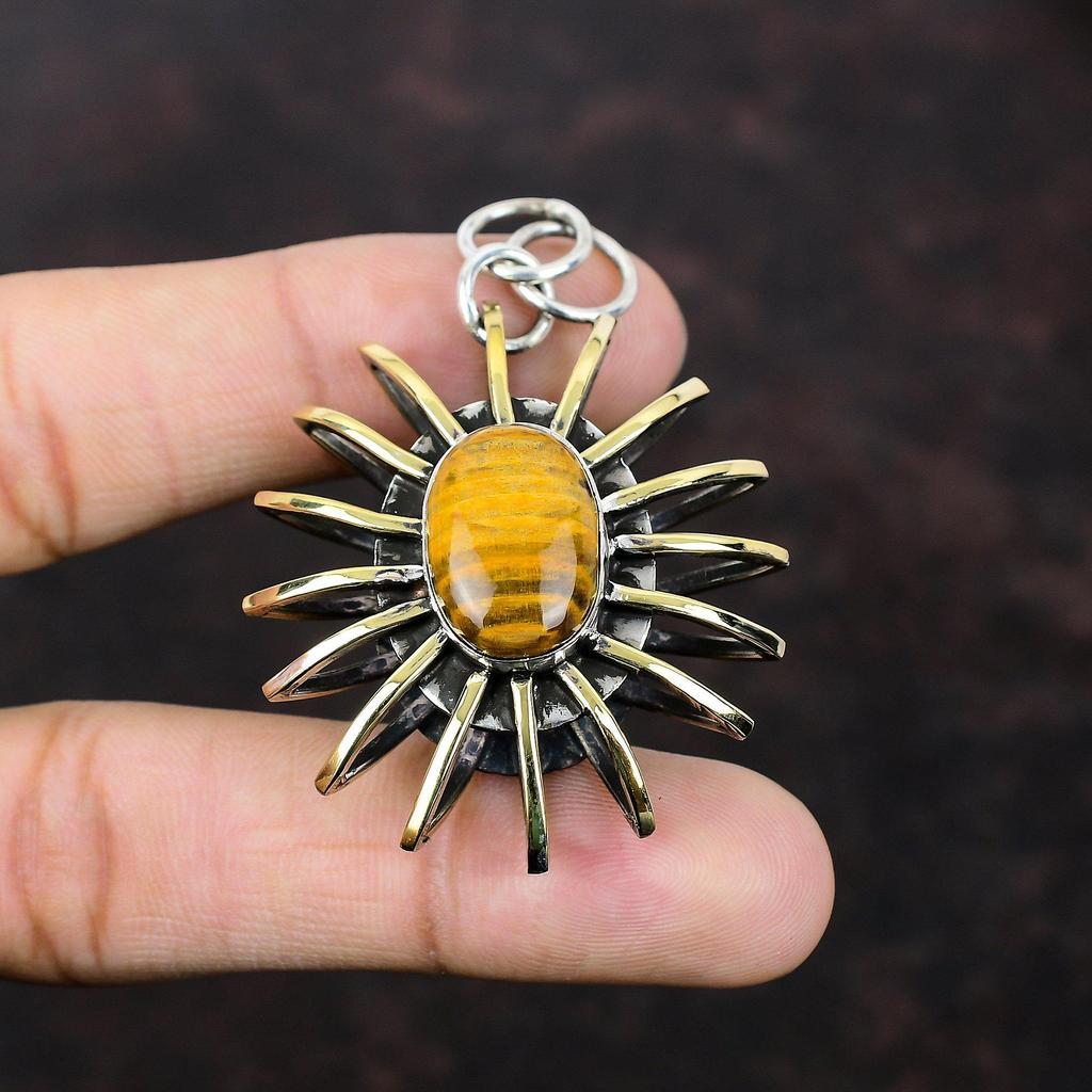 Tiger's Eye Pendant Handmade Jewelry 925 Sterling Silver Pendant 18K Gold Plated Pendant Cage Jewelry Antique Gemstone Pendant Gift For Wife