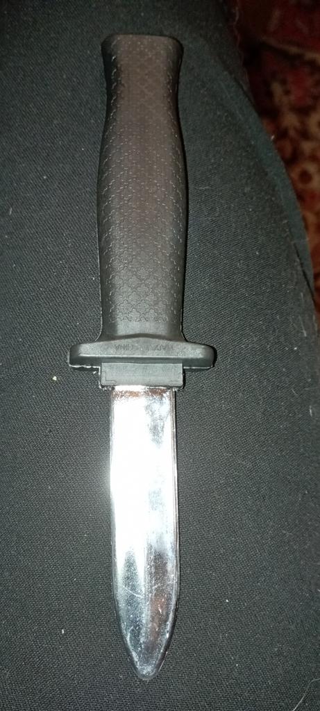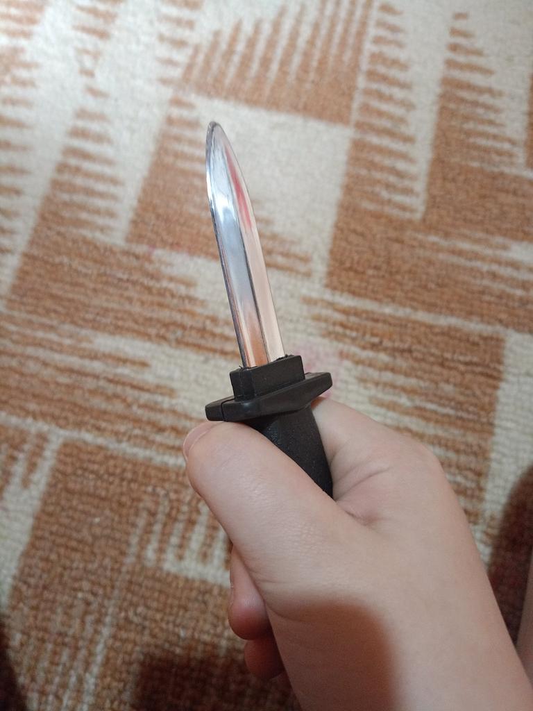 The knife is plastic, with a spring inside the body. Ideal toy for a child