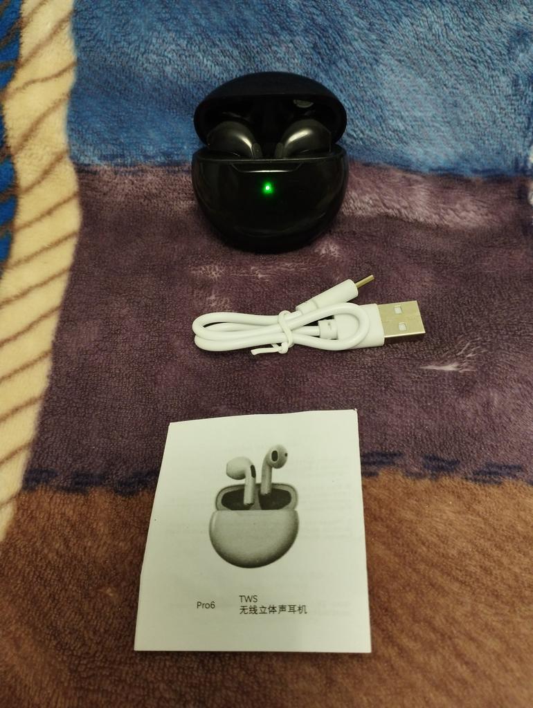 Wireless Headphones Air Pro 6. The headphones arrived charged and connected quickly via Bluetooth.. Control on the headphones touch, you can answer calls and pause. The earbuds are compact and fit well. Case cover and earphones on a magnet. To listen to music, the charge lasts for 2 hours. Included: Headphones. Case Charging Cable. Instruction. Headphone sound is good. Satisfied with the order. All successful shopping.