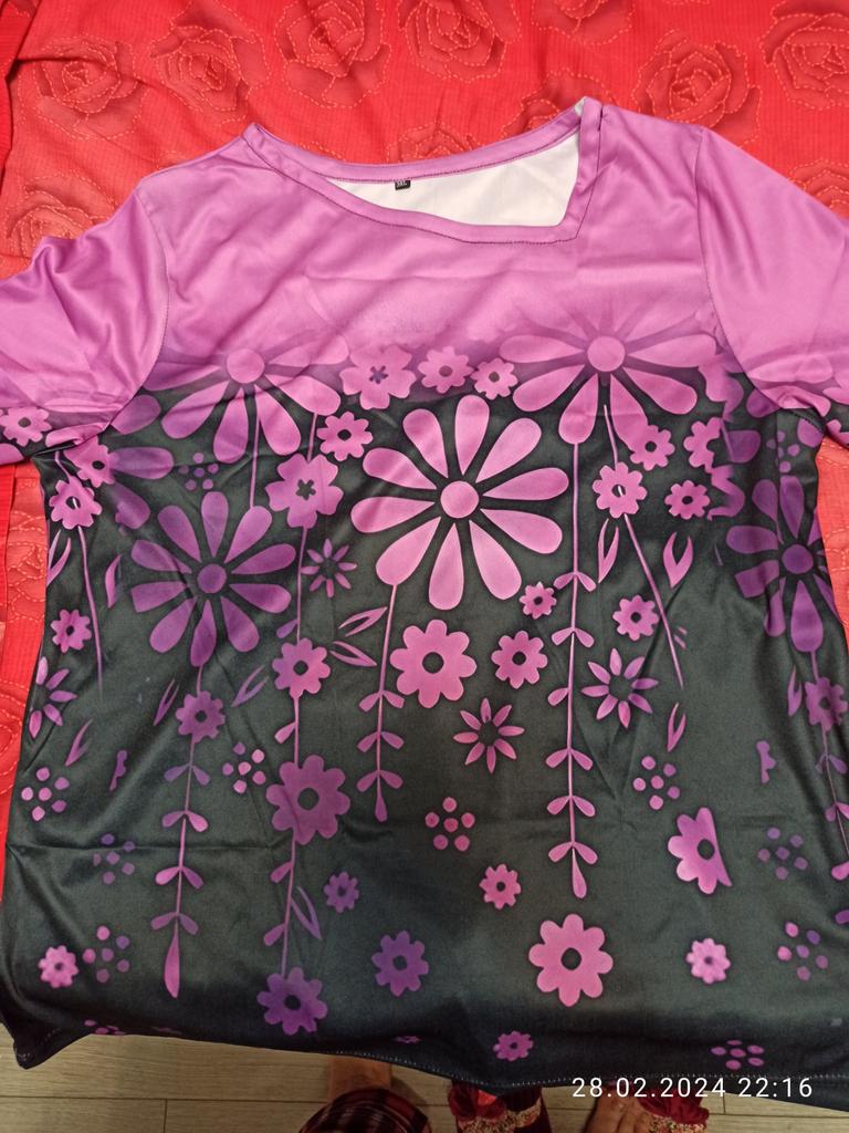 Summer Irregular Neck Short Sleeve Bottom T Shirt Women Floral Print Casual T-shirts Top