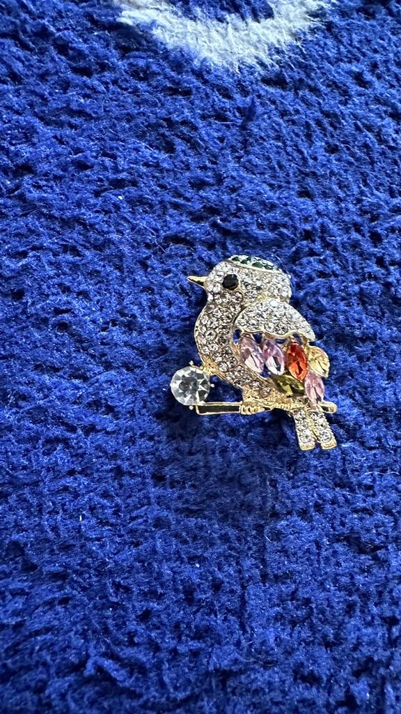 A wonderful little bird on a coat or jacket!
