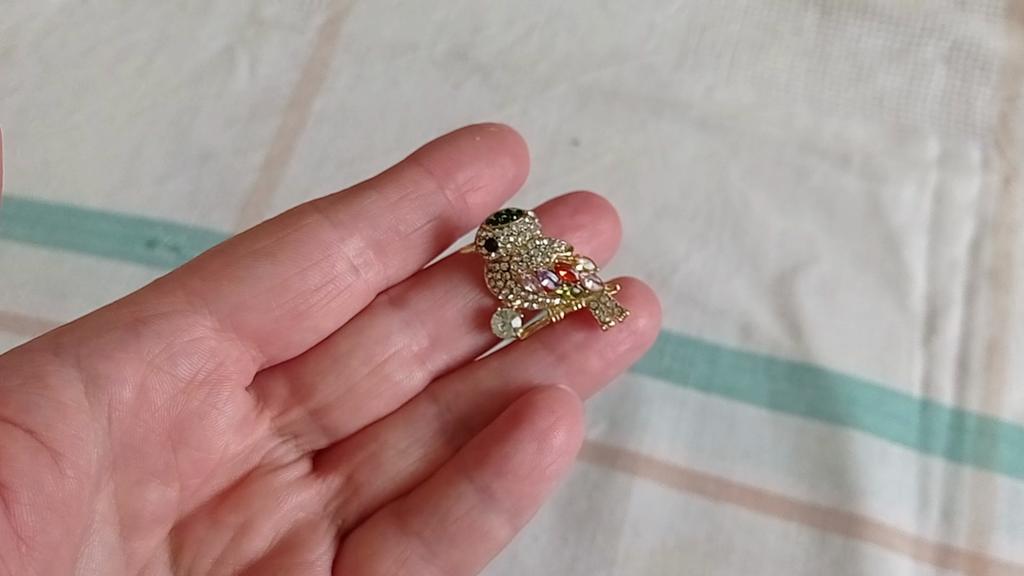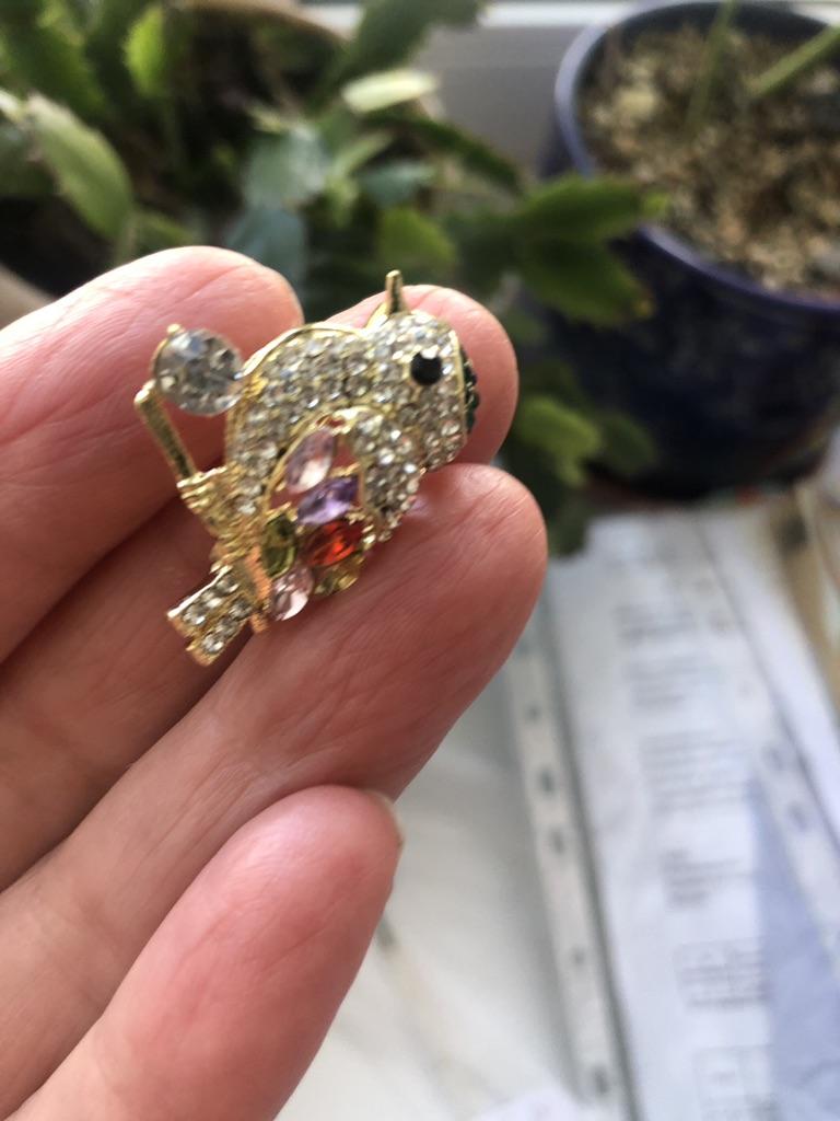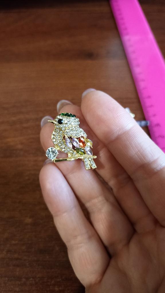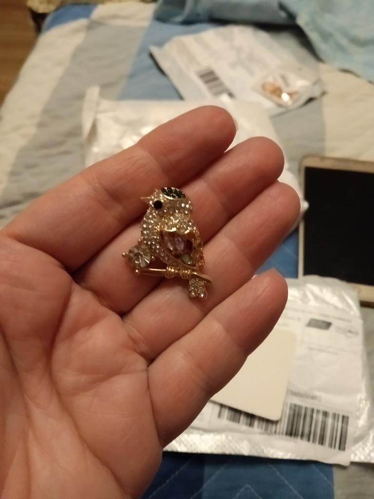 Everything arrived perfectly, the stones are in place, it sparkles brighter than in the photo, that’s exactly what it is. Tiny, cute, but the one in the photo looks more interesting precisely because of its muted shine and, it seems, more beige shade.