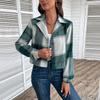 Autumn Women's Jacket Short Plaid Cardigan Vintage Lapel Cozy Casual Long Sleeve Jacket