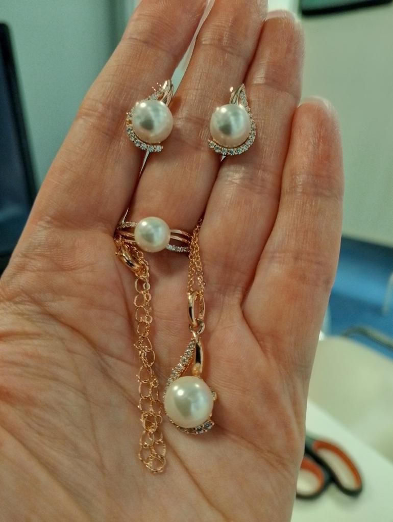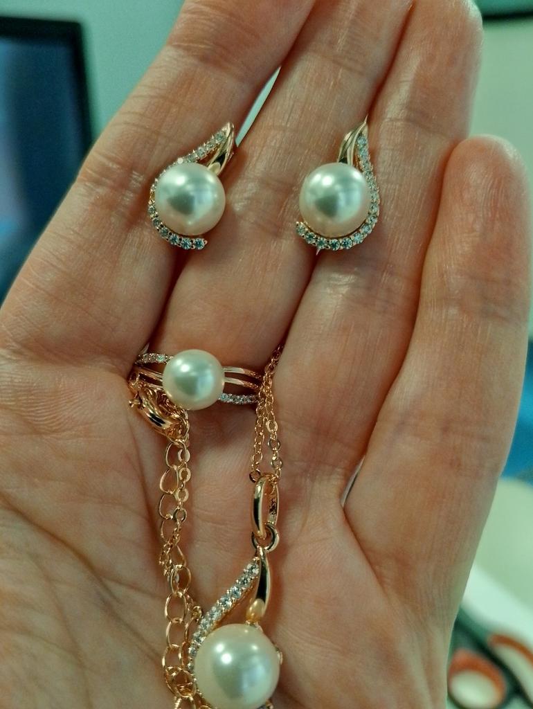 They look like real gold, but the pearls are large and very perfect in shape. This will probably give away the costume jewelry. Overall, I am happy with the product, I recommend it.