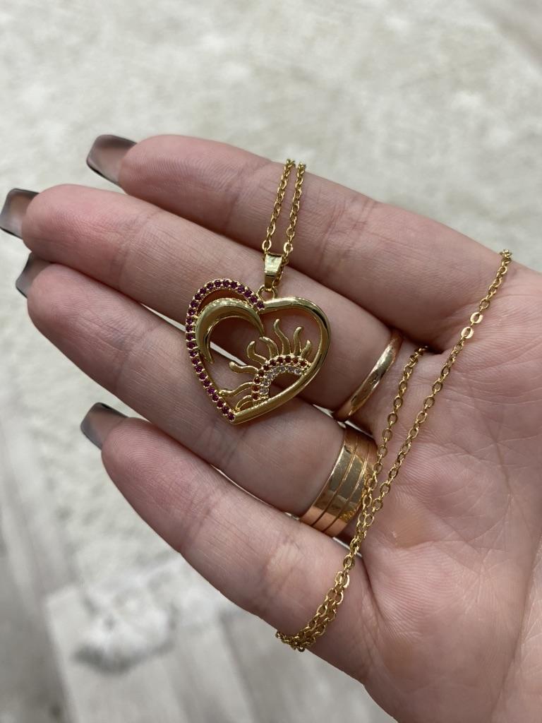 Love Pendant Necklace with Micro Inlay of Colored Zircon Collarbone Chain, Geometric Girl Pendant, Heart-shaped Necklace Jewelry Gift