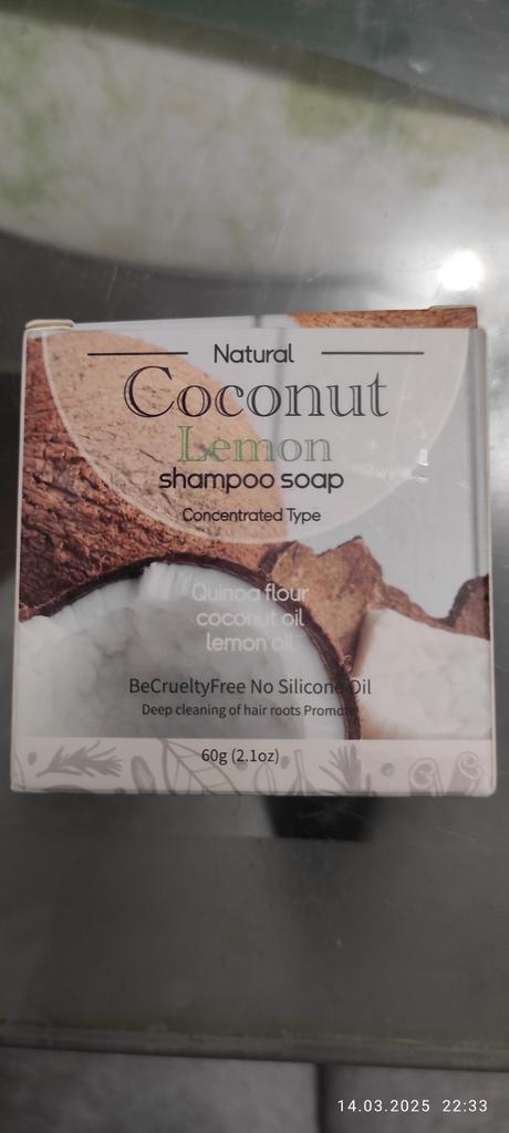 This is the third time I've ordered solid shampoo, although this one with coconut is the first one, I hope it will work as well as the other one, it smells good