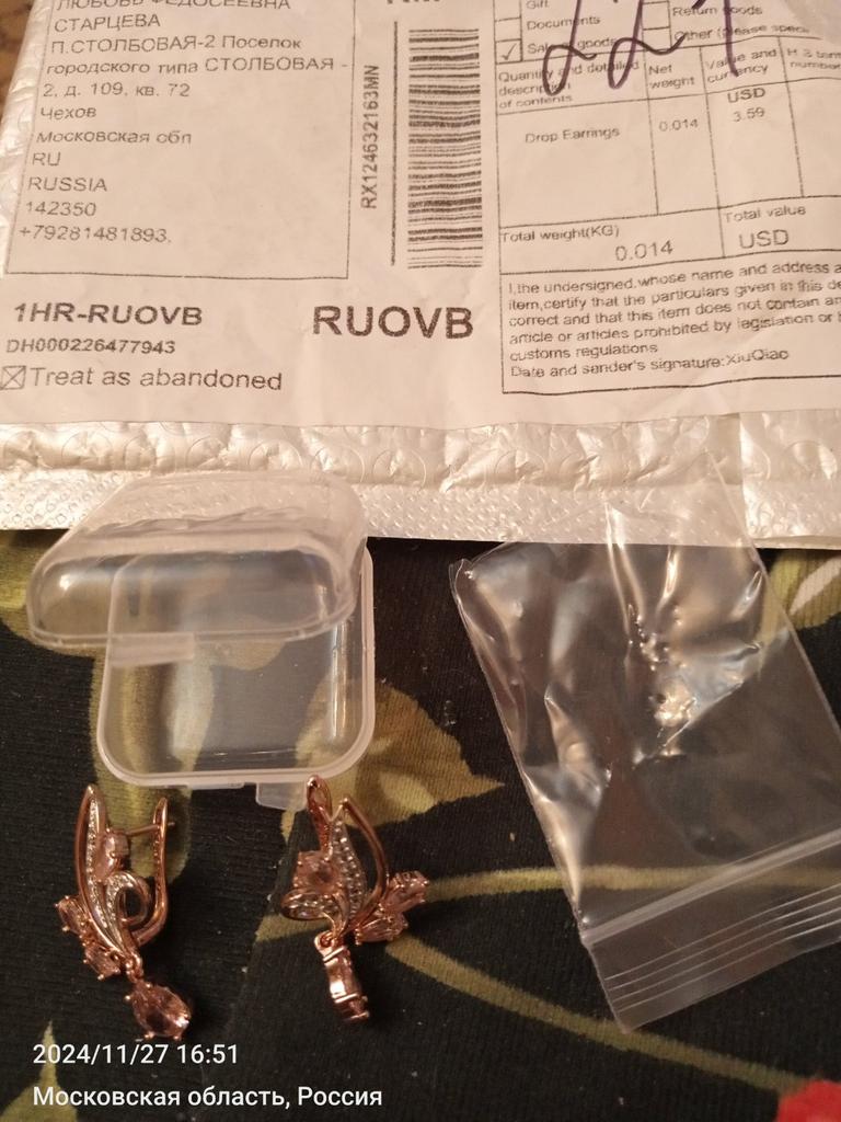One fastener is very loose, it had to be tightened. And in general, beautiful earrings arrived in a month