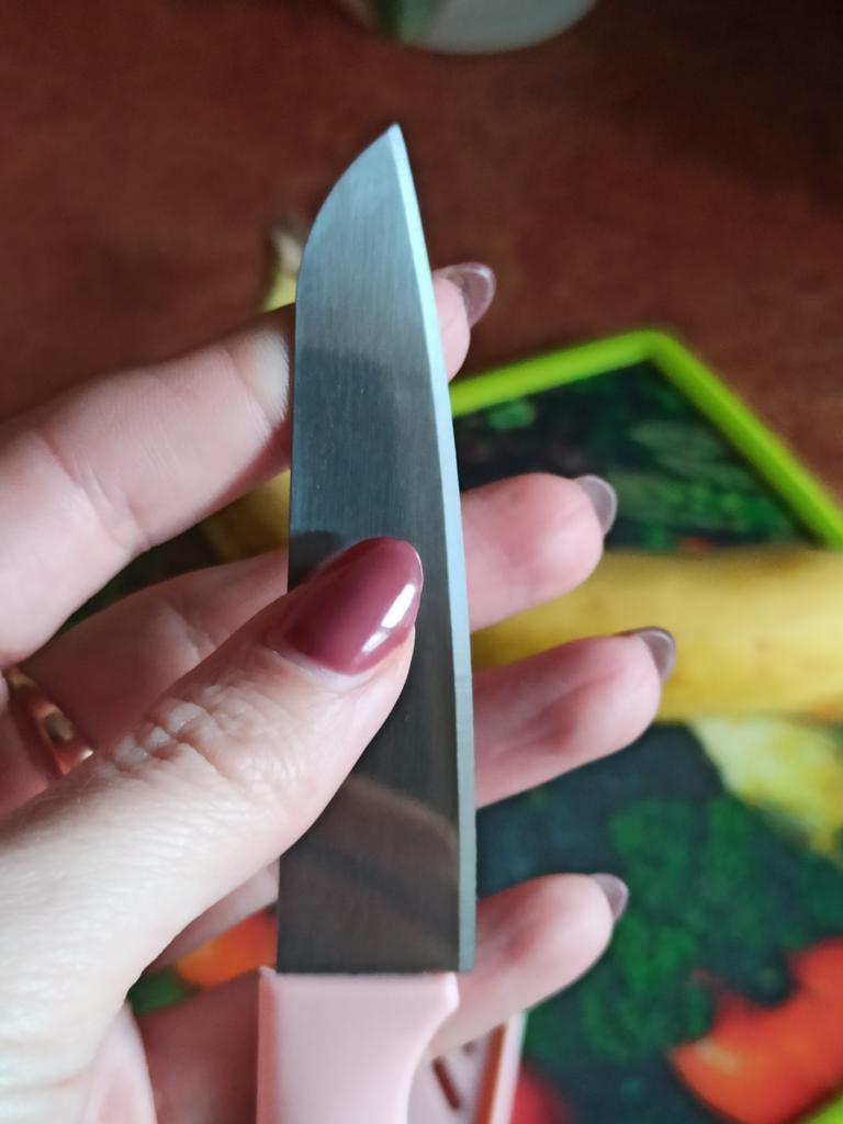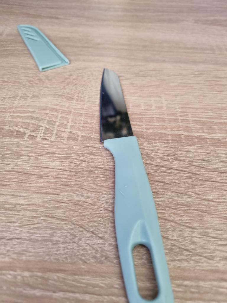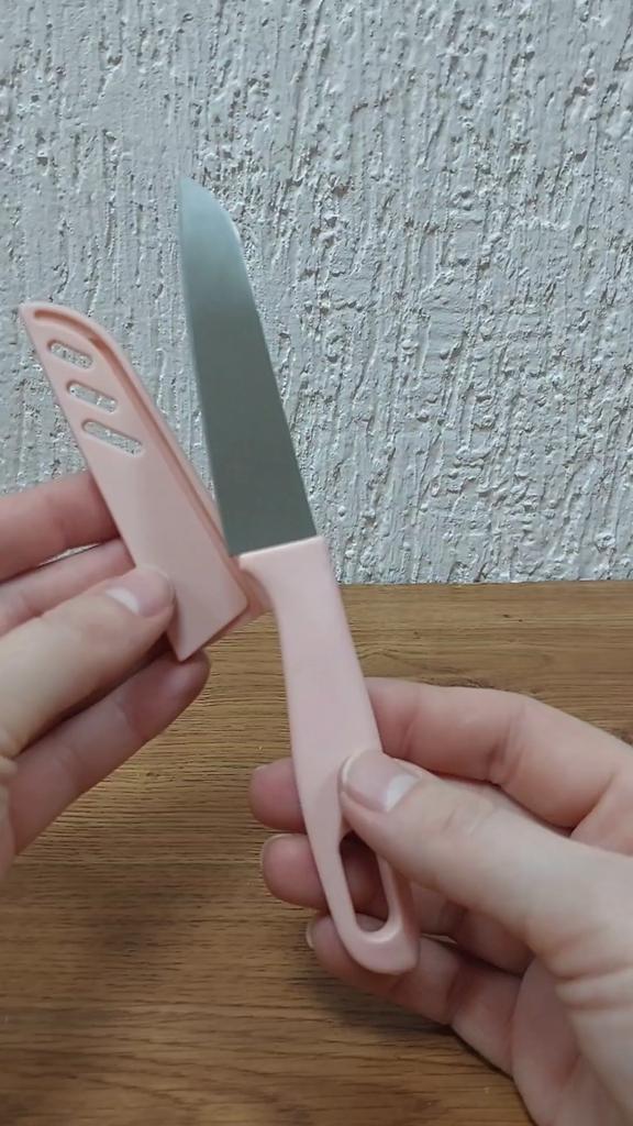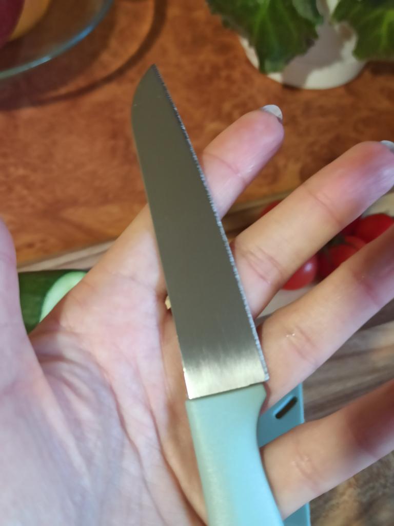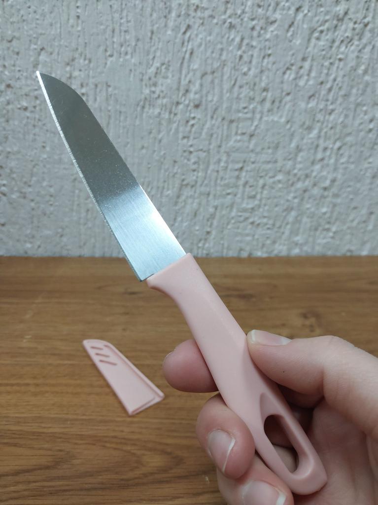 ❤️👍Small knife The 9.7 cm long blade is ideal for working with vegetables, fruits and small products. Its compact size and light weight make it indispensable both at home and on the go. The knife has a thin and sharp blade, which allows you to make neat and precise cuts. The plastic handle is comfortable in the hand, does not slip and provides a secure grip. The plastic cover is tightly fixed, protecting the blade and preventing accidental cuts during storage or transportation. The knife is thin and not suitable for everyday use. But it is very sharp.. ❤️👍I recommend it for light tasks and minimalism lovers!