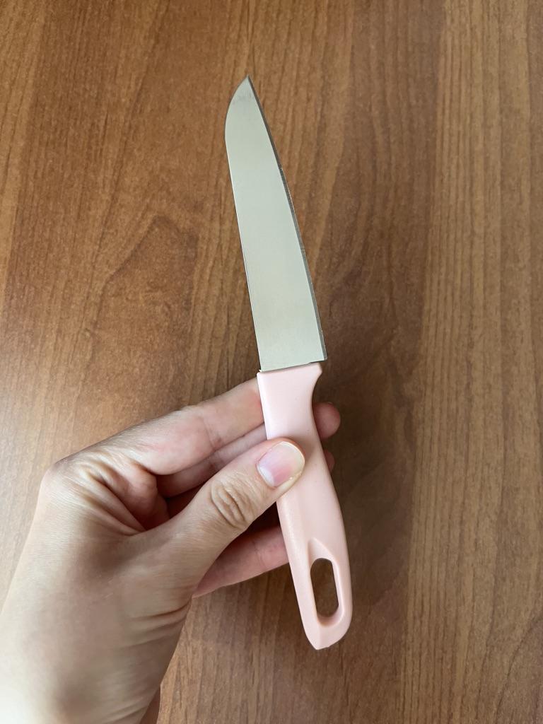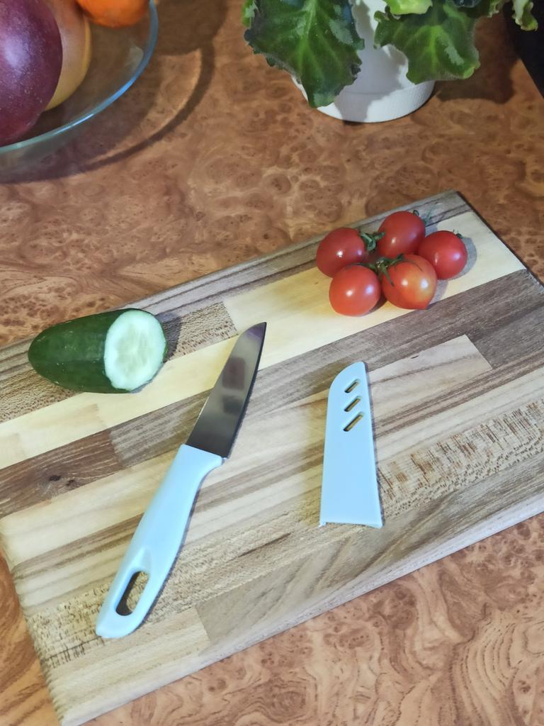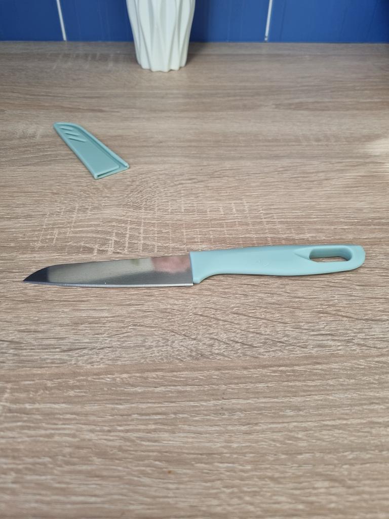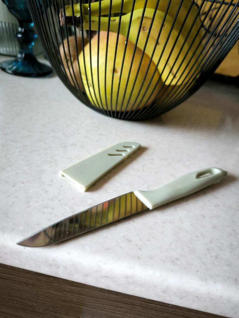 ❤️👍Small knife The 9.7 cm long blade is ideal for working with vegetables, fruits and small products. Its compact size and light weight make it indispensable both at home and on the go. The knife has a thin and sharp blade, which allows you to make neat and precise cuts. The plastic handle is comfortable in the hand, does not slip and provides a secure grip. The plastic cover is tightly fixed, protecting the blade and preventing accidental cuts during storage or transportation. The knife is thin and not suitable for everyday use. But it is very sharp.. ❤️👍I recommend it for light tasks and minimalism lovers!