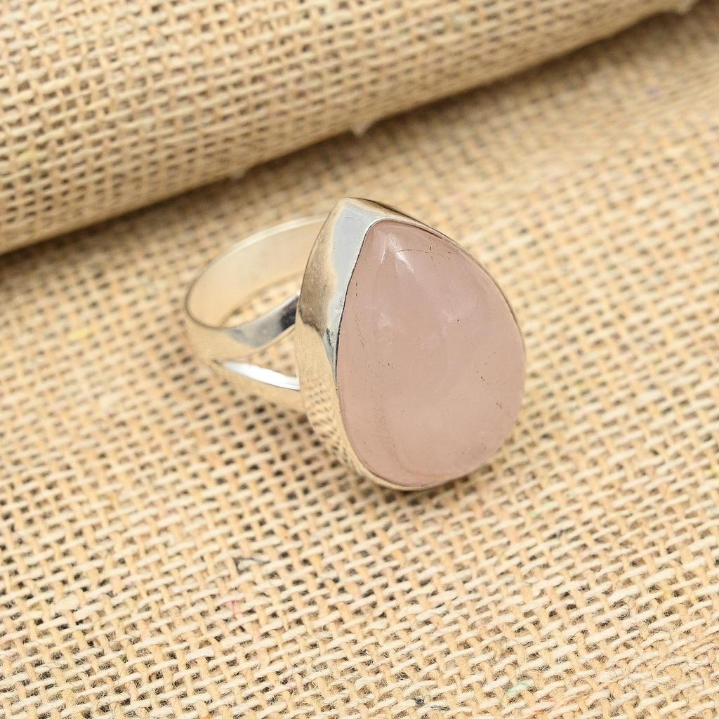 Beautiful Rose Quartz Gemstone Handmade 925 Sterling Silver Ring Jewelry