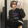 Vintage Distressed Sweatshirts Fleece Women Hip Hop Streetwear O-Neck Loose Long Sleeve Print Graphic Hoodie Autumn Winter