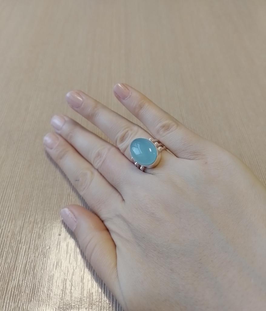 Charming Blue Chalcedony Gemstone 925 Sterling Silver Handmade Lovely Jewelry Ring