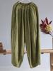 Johnature Women Vintage Linen Wide Leg Pants Elastic Waist Loose Autumn Trouser Chinese Style Women Soft Long Pants