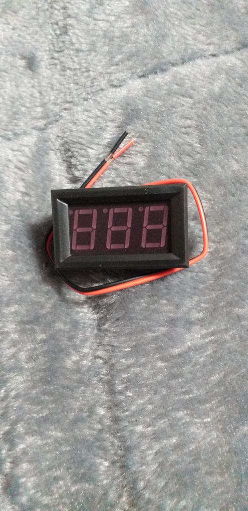 Inaccurate readings for approximately 10s and then it went out. In the photo is my old small voltmeter, a 12V battery, and the new voltmeter I planned to replace the old one with. Wire splices, the old one lights up, the new one - does not light up.