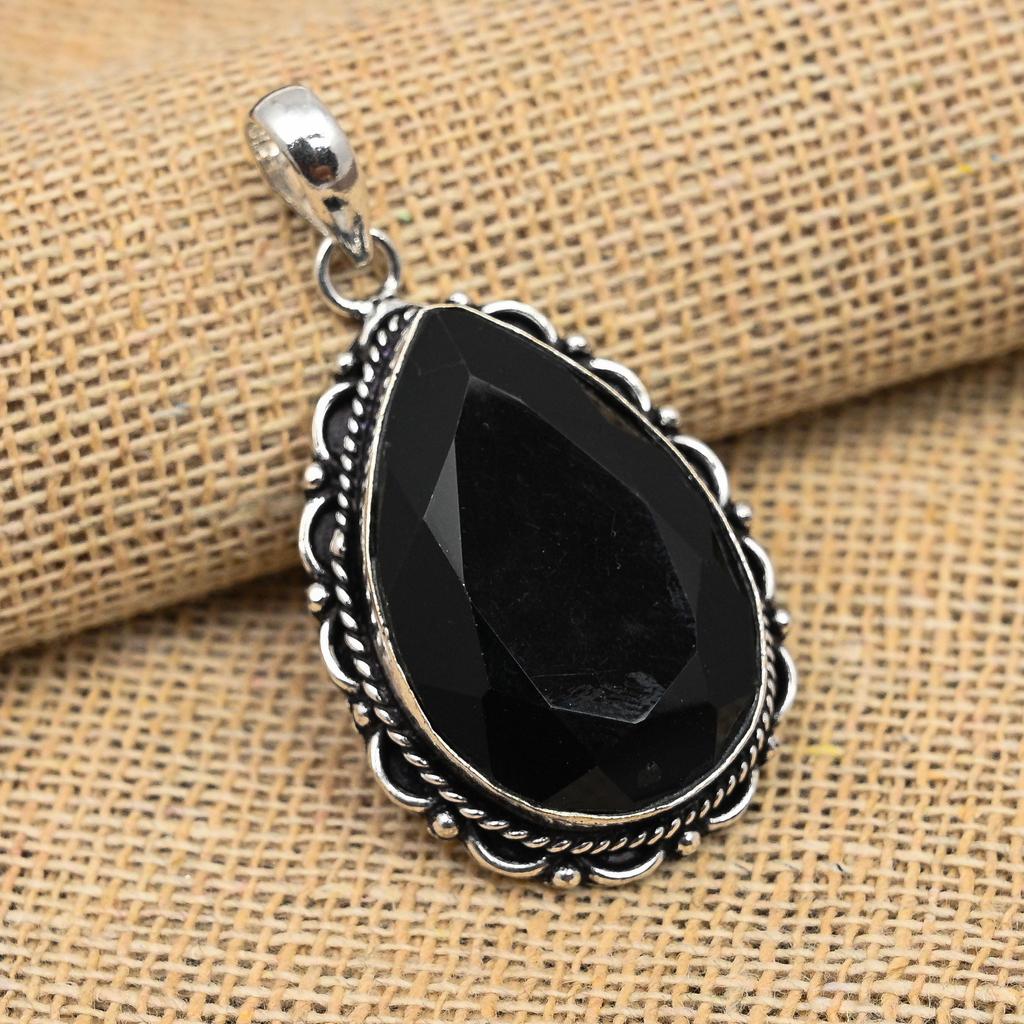 Black Spinel Gemstone Handmade 925 Sterling Silver Jewelry Lavish Pendant For Wedding Gift