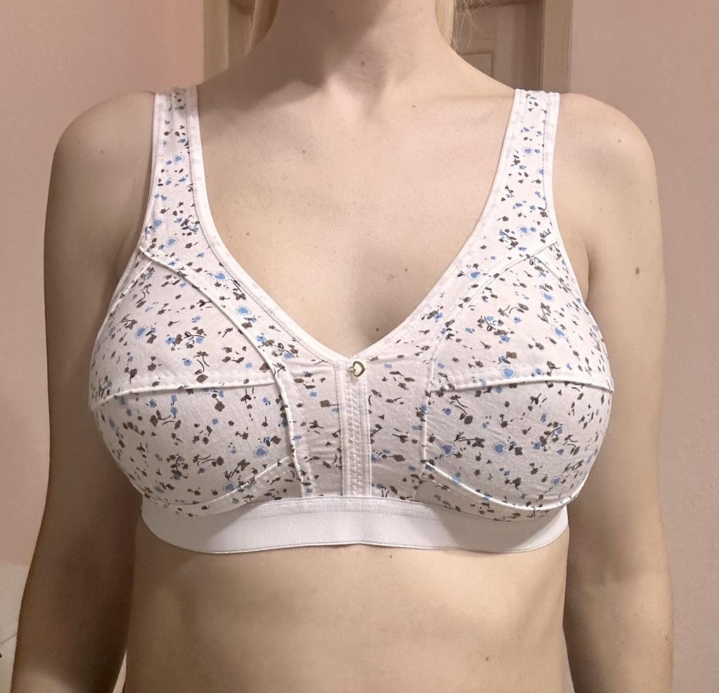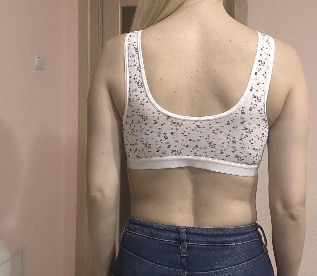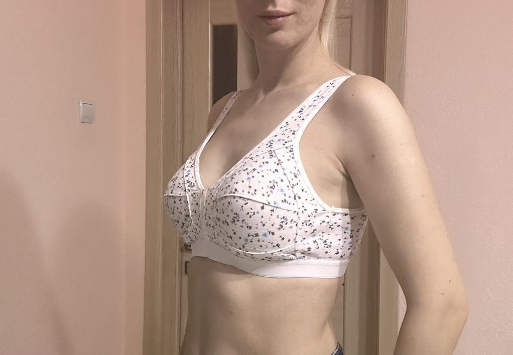 The order arrived quickly. It's perfect for my size 95B. I ordered 3 pieces - white, pink and blue, I think it's cotton. It holds the chest well, the cups are also suitable for size 95C. The girth is great, nothing presses, doesn't pull, it will also fit a girth of 100. For now I wear it at home under a house suit. In the fall, I think it will be ok under jumpers, i.e. I can go out "into the world". Thanks to the manufacturer and the store! You pleased me👍 P.S. after a week: it is uncomfortable to put on, it twists on the back. I have one problematic arm, so I have to pant. It would be ideal if there were buttons for fastening in the front. Otherwise, it is comfortable. It has not changed after washing.