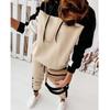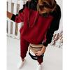 Winter Fashion Women's Long-sleeved ColorBlock Two Piece Outfits Casual Loose Hooded Top & Drawstring Pants Set Sport Suits