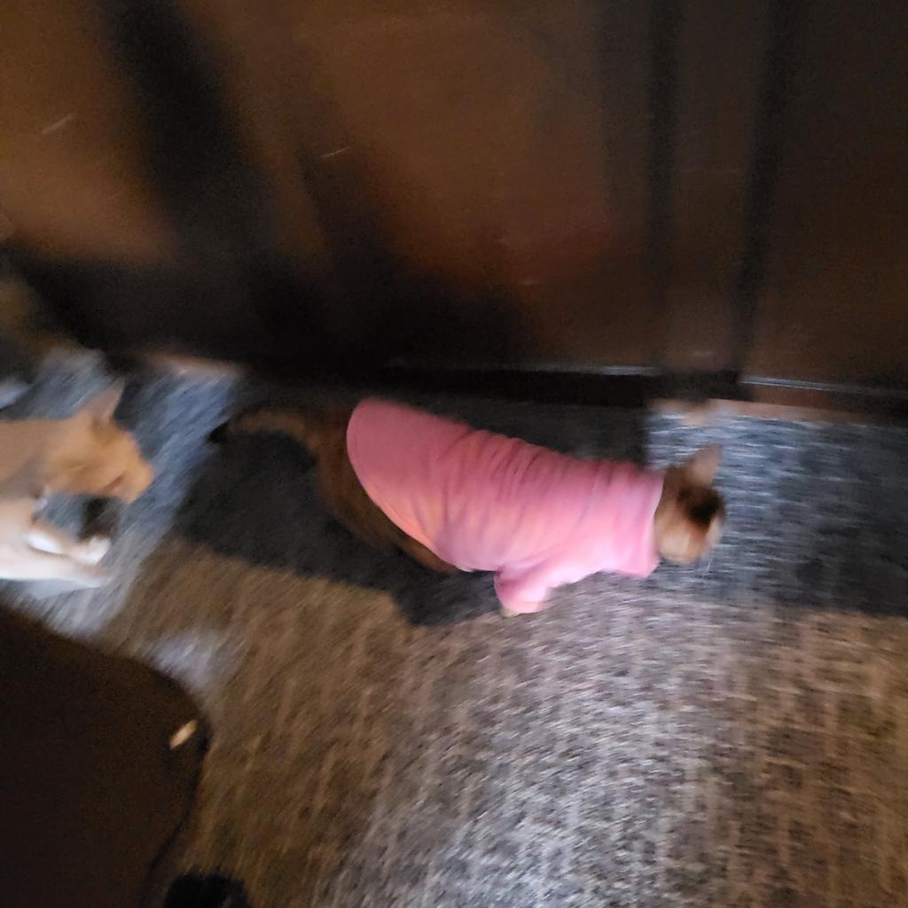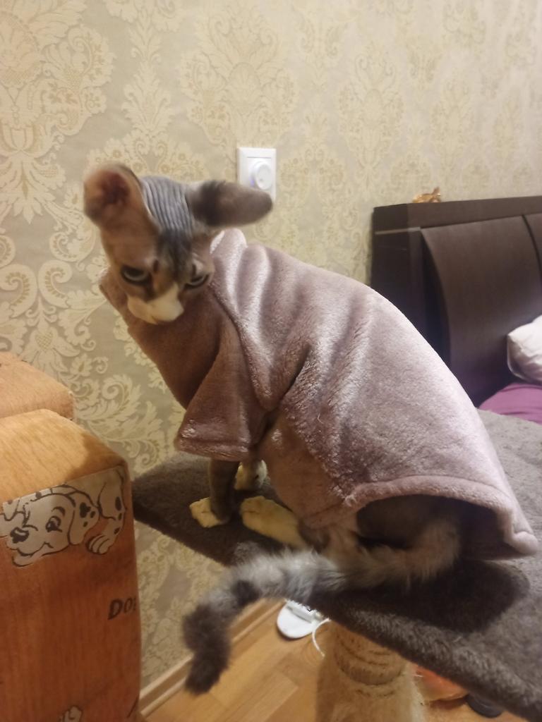 The blouse is excellent, it fits the cat well, but for a female cat it would have been better to get a size smaller.