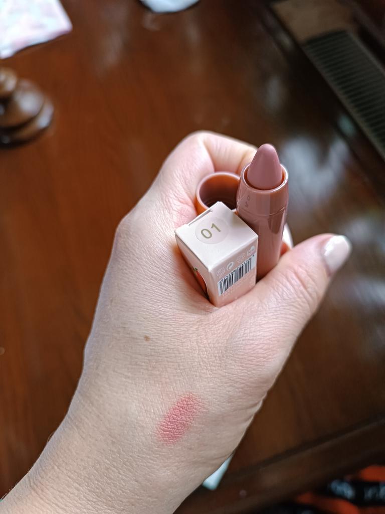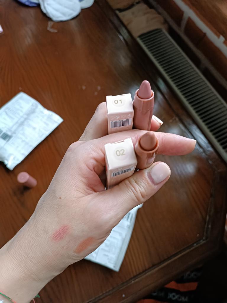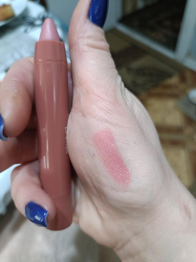 Matte lipstick-pencil. It lies nicely on the lips, the color is neither bright nor dark, more natural. Light fragrance. Thanks to the seller and Joom.