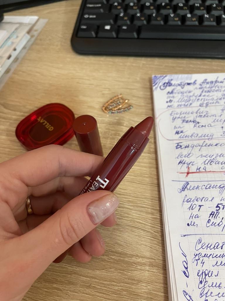 Lipstick pencil number 08. This is not the first time I have ordered it. The color is beautiful, it is easy to apply. It twists. Lipstick is enough in a pencil. Delivery is fast, packaging is normal