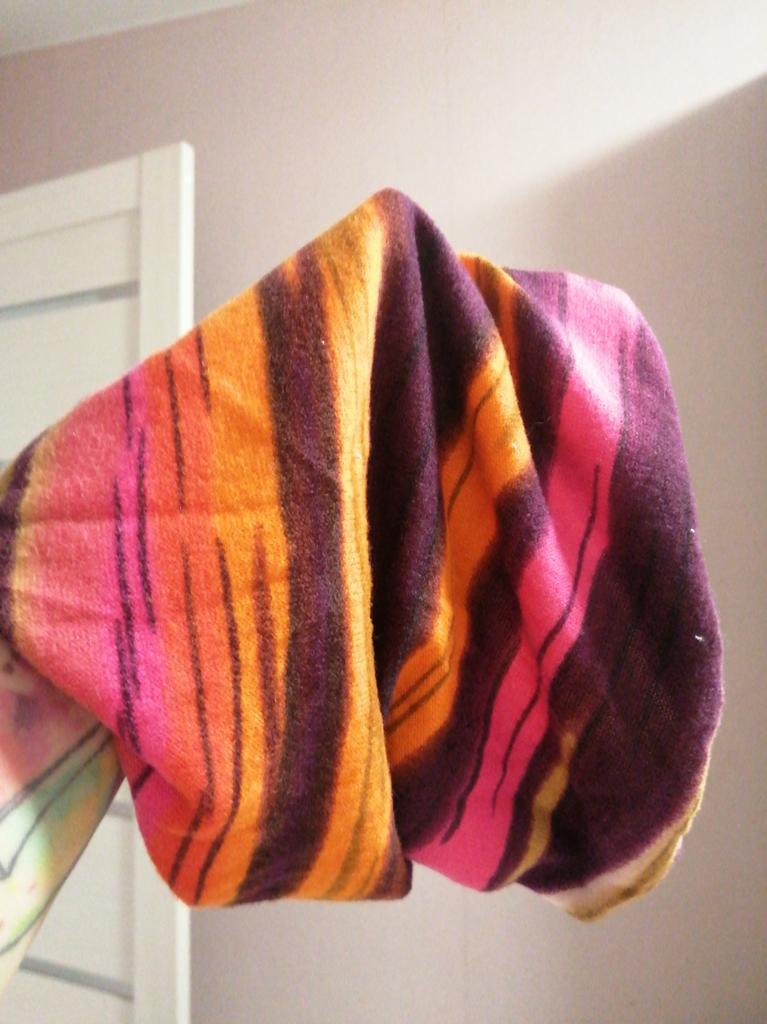 Soft, cute, for autumn - spring. Can be used as a scarf, but the head fits through with difficulty