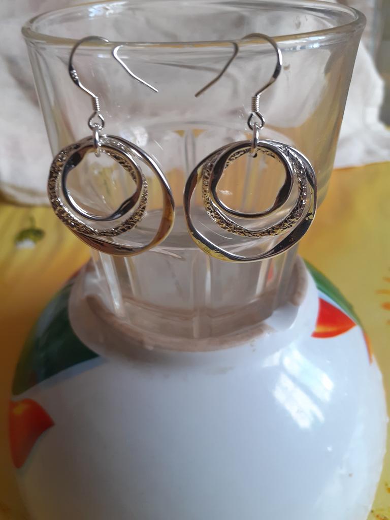 925 Sterling Silver Three Circle Drop Earring Jewelry