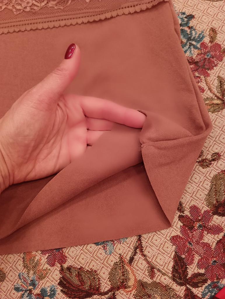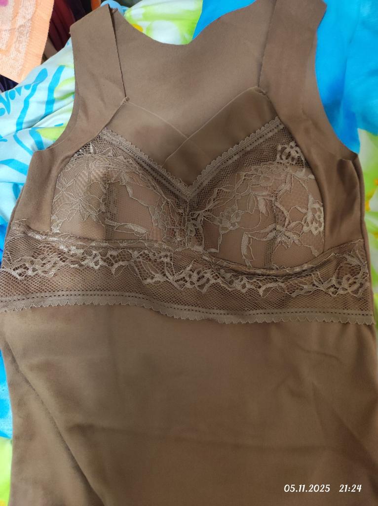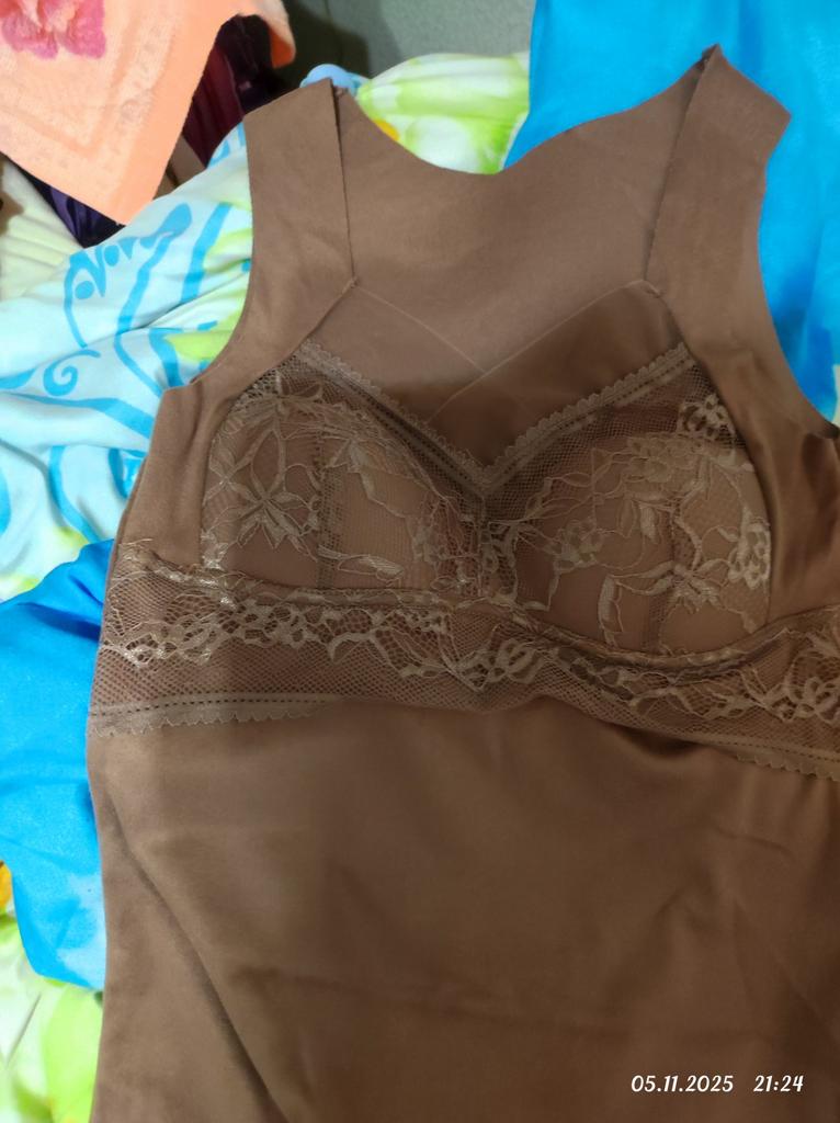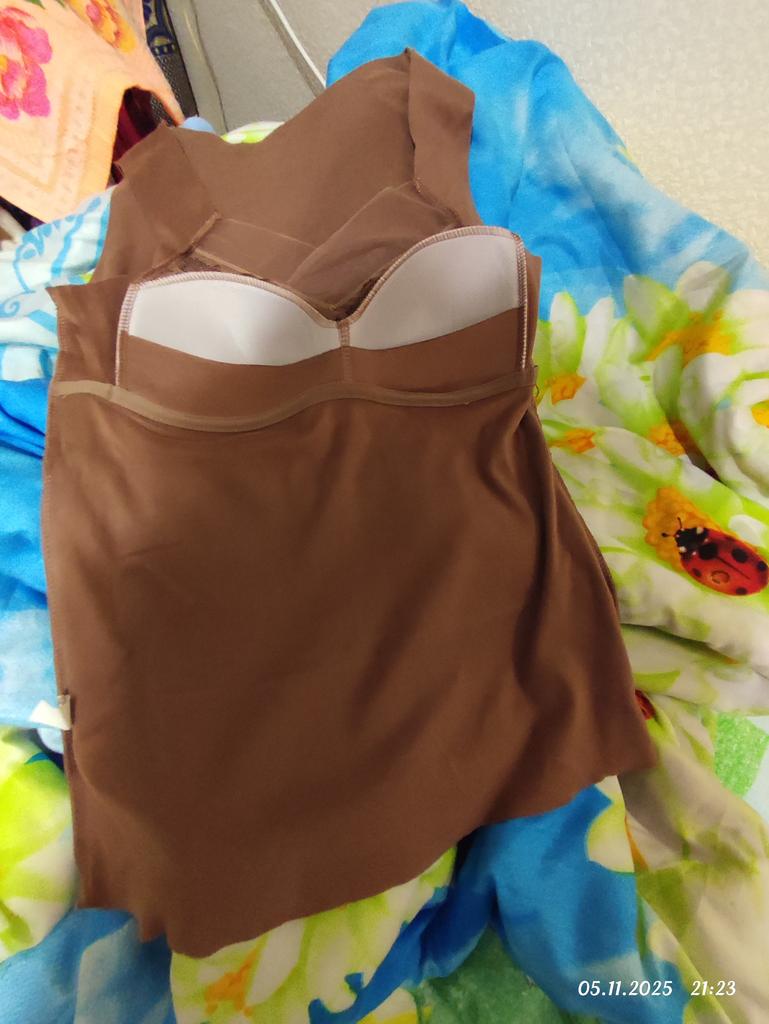 Thanks to whoever came up with such a wonderful thing! And for good faith when sending - also! Fabric of medium thickness, soft synthetics. Not electrified. Comfortable to the body. Stretching. Holds the shape of the body well. But I took a size smaller to ensure this function. For 50 size 2X. The color matches the photo. Coffee is slightly denser than beige.