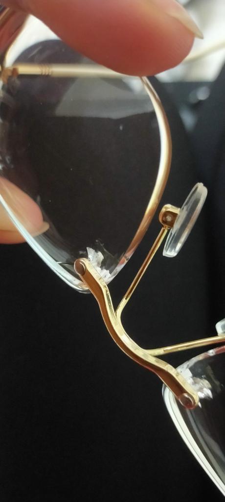 The lenses are cracked near the screw on the bridge of the nose . The defect is very noticeable.