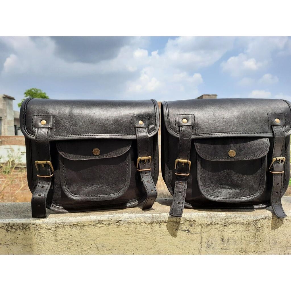 Black Leather Pouch Motorcycle Both Side Saddlebags Saddle Panniers 2 Bag New