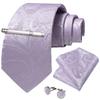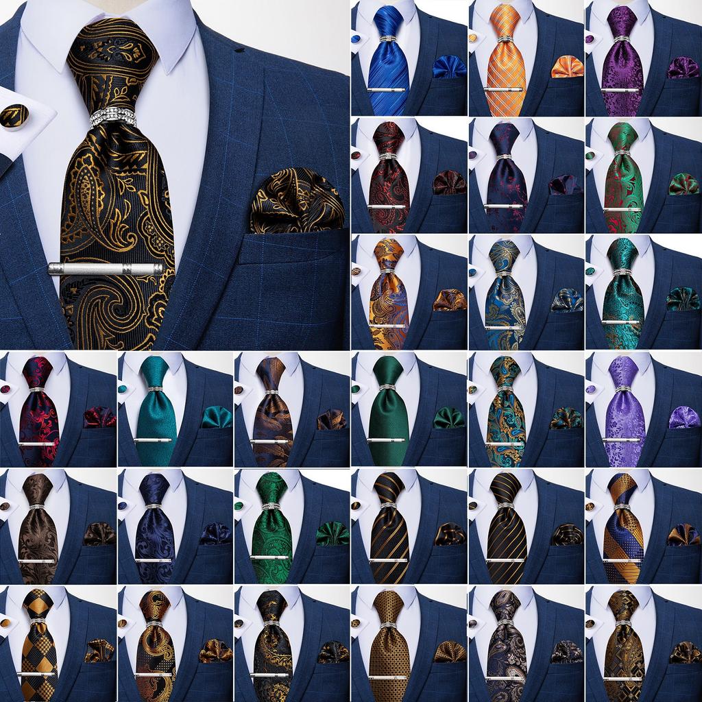 USA Mens Silk Tie Classic Yellow Gray Striped Necktie Cufflink Hanky Clips Set