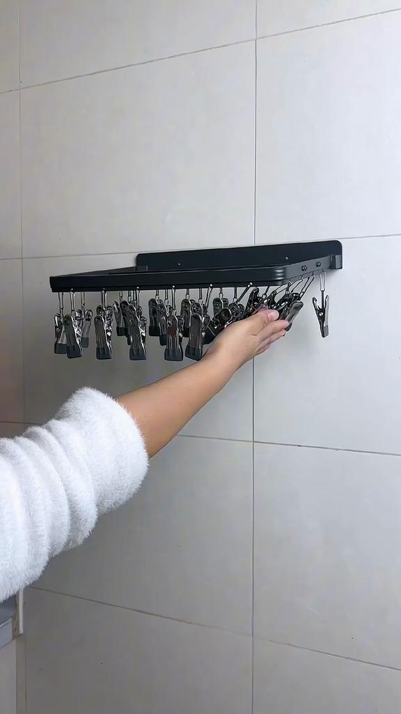 Laundry Organizer 12/20/26 Hooks Shelf Bra Underwear Fixed Wall Mounted Socks Clips Aluminium Alloy No Drilling Black