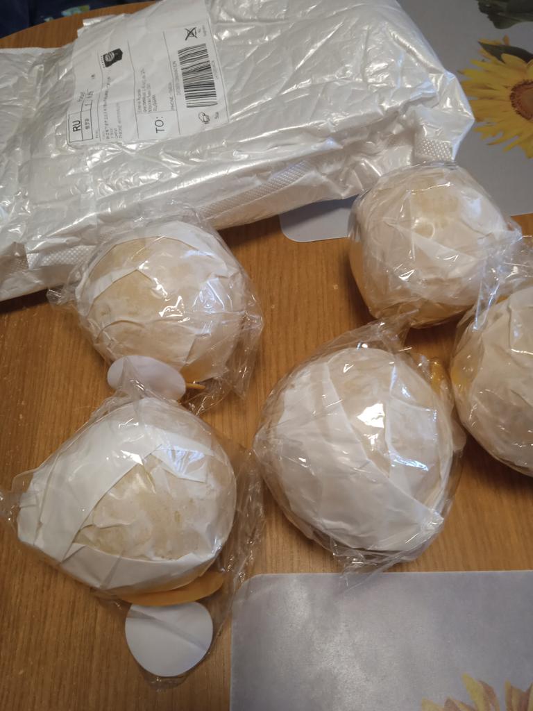 The parcel arrived in a scratched, but sticky state. We will wait for spring