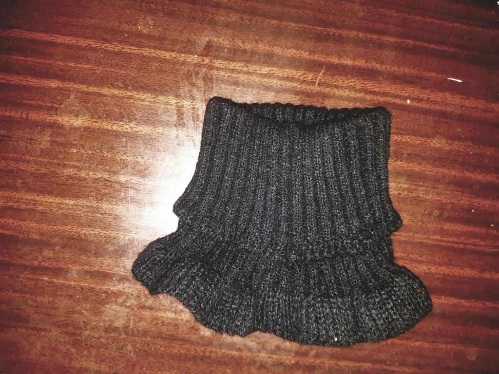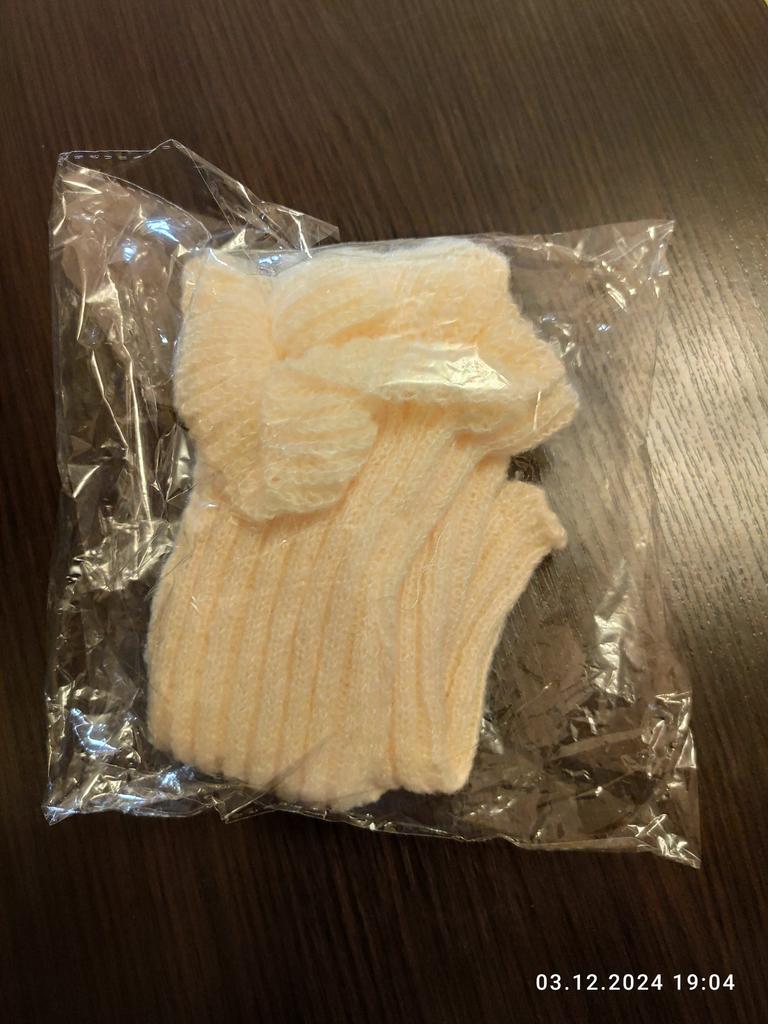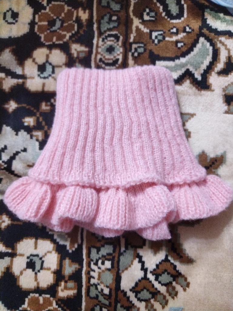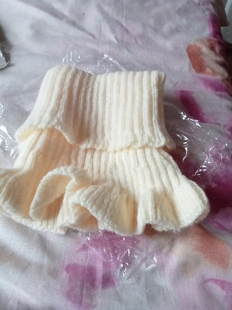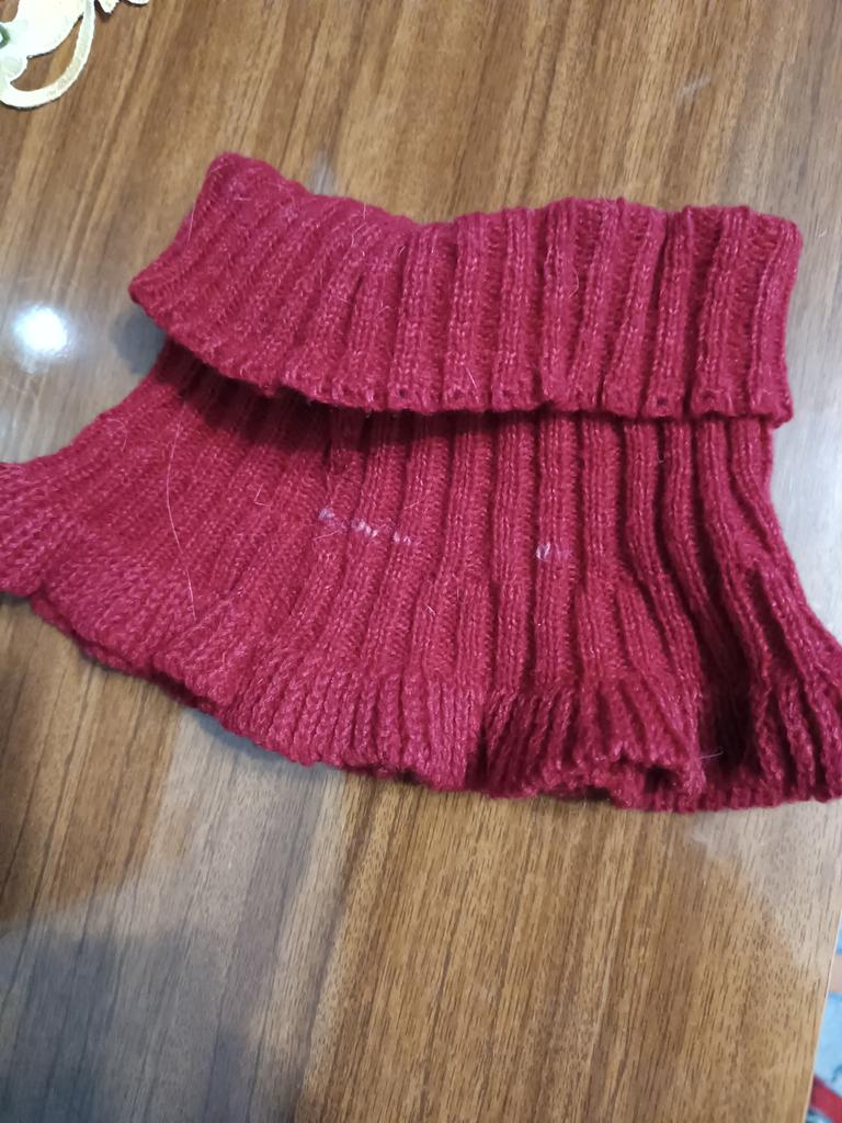 You can't call it a bib, they haven't even finished knitting the loops, they haven't processed them completely, it might come undone. It's very small, like for a newborn baby.