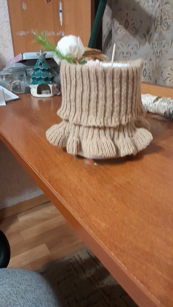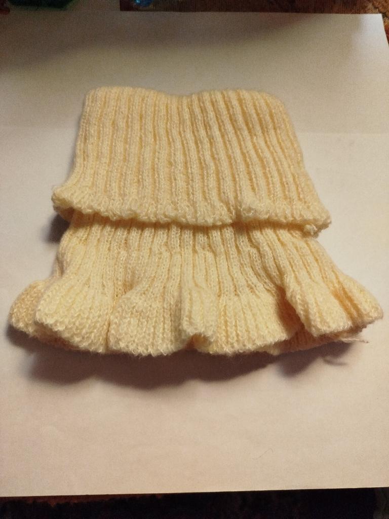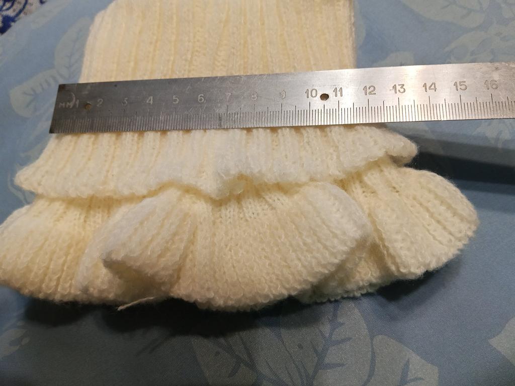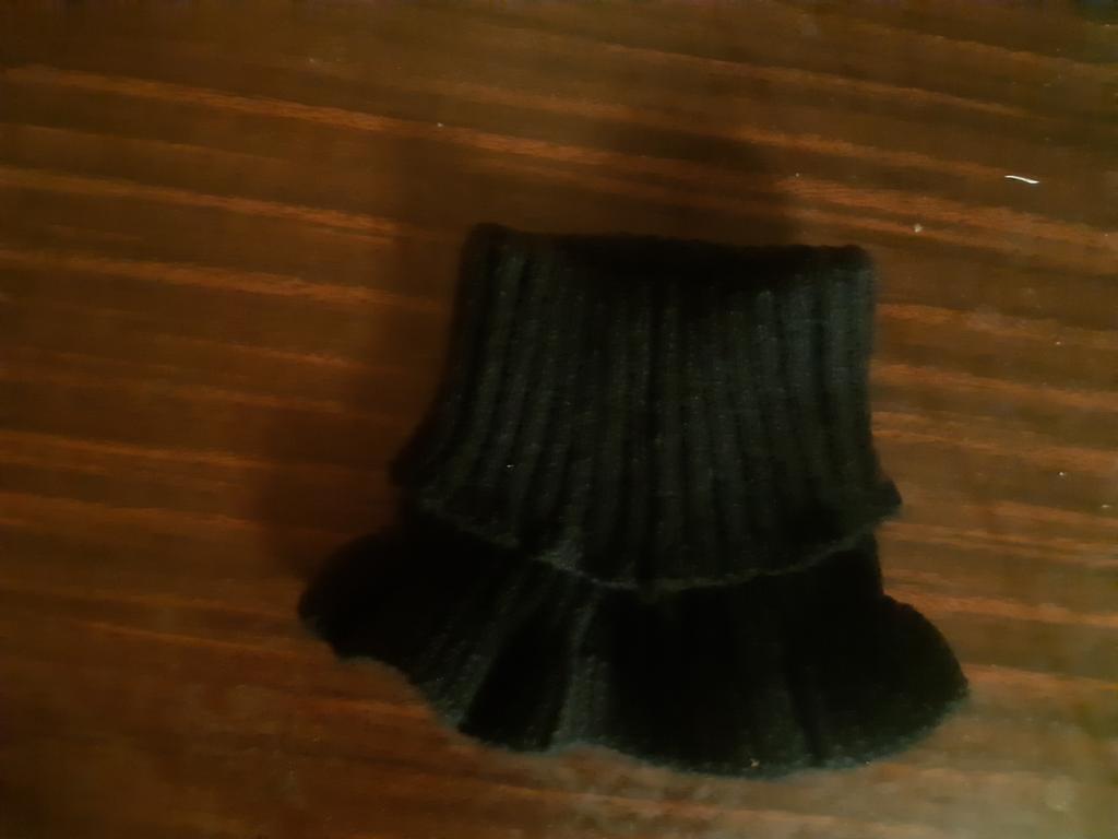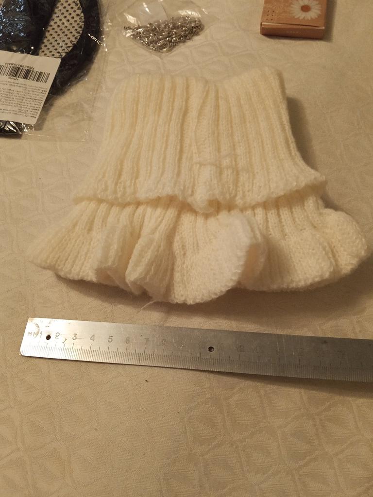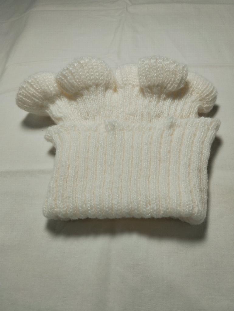 You can't call it a bib, they haven't even finished knitting the loops, they haven't processed them completely, it might come undone. It's very small, like for a newborn baby.