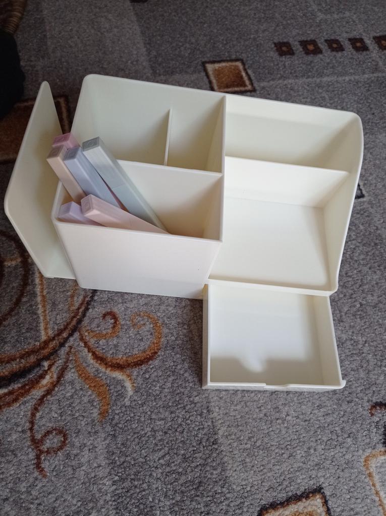 A good organizer, compact, fits a large number of items, thanks to this there is more free space on the table. Very convenient, easy to assemble. I am happy with the purchase.