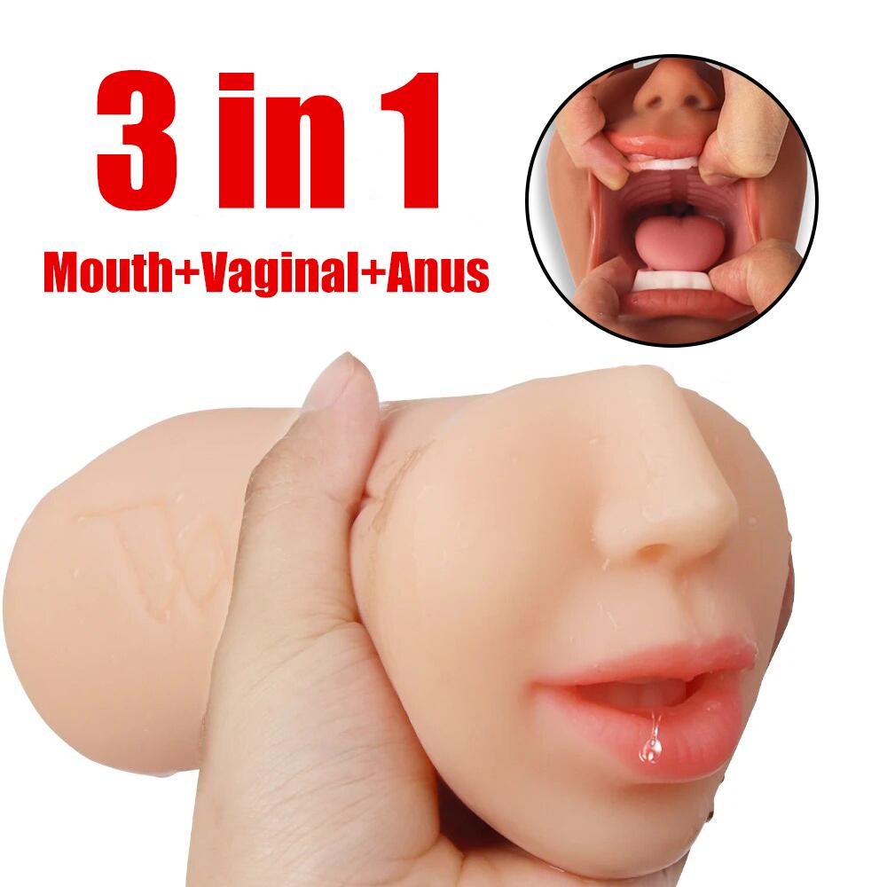 3 IN 1 Sex Toys Masturbation for Men Deep Throat Artificial Real Pussy Oral Male Masturbator BlowjobRealistic Rubber Vagina Sex Male Sex Toys for Men