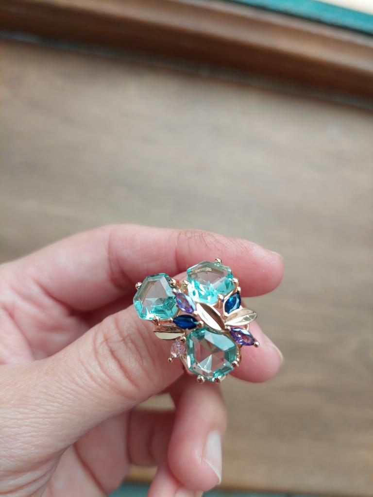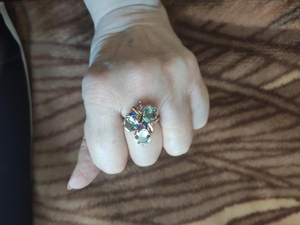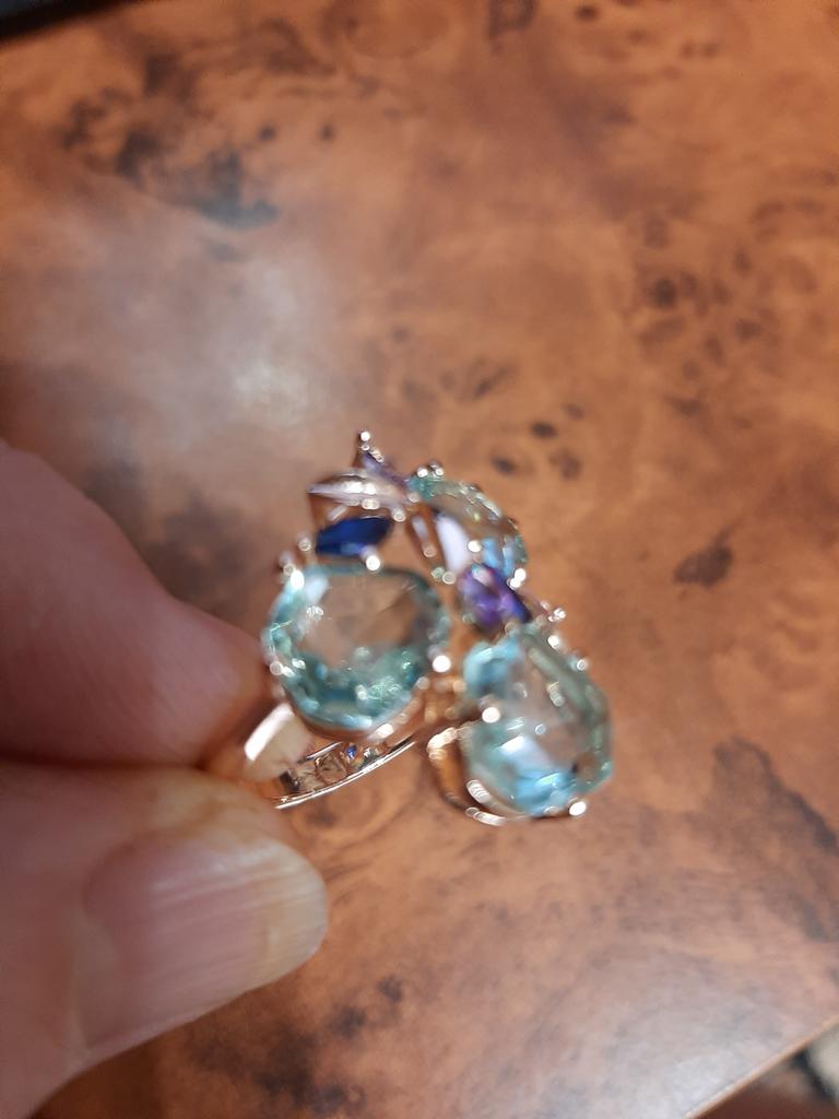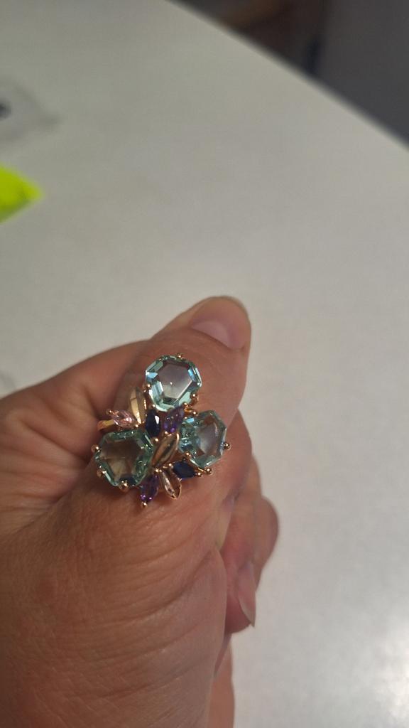 Delicate ring with large stones, for the middle finger, looks bulky on the 4th finger