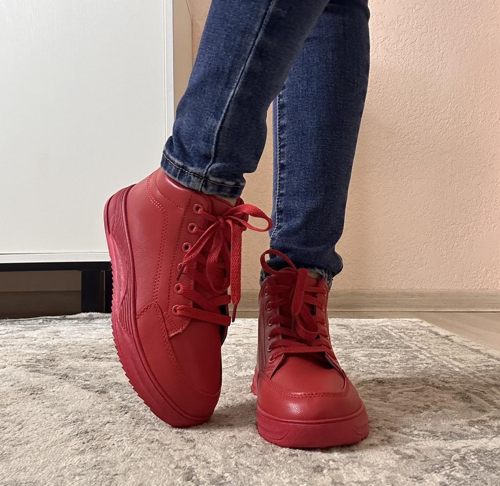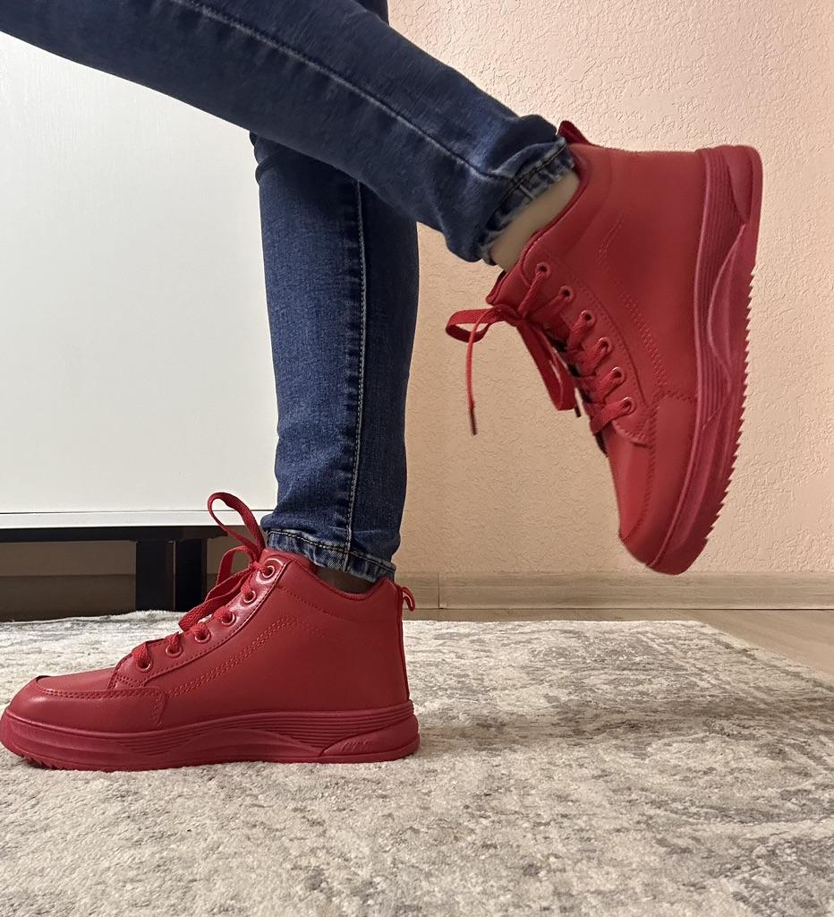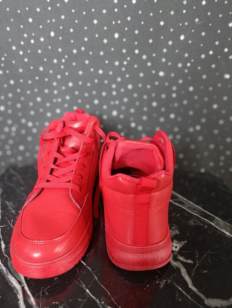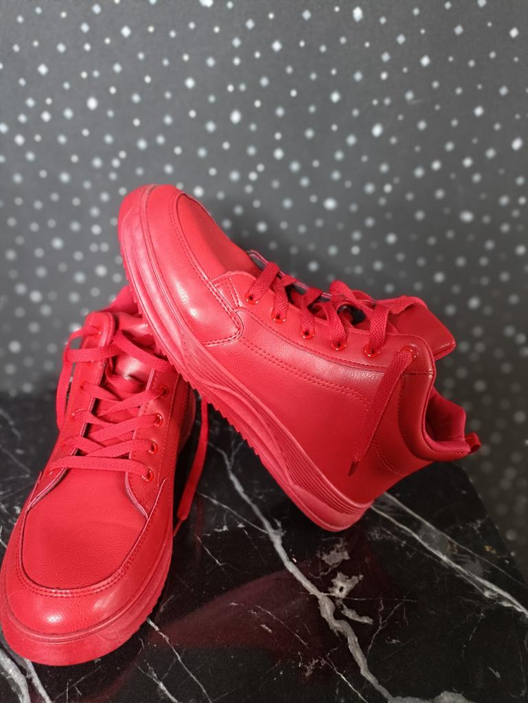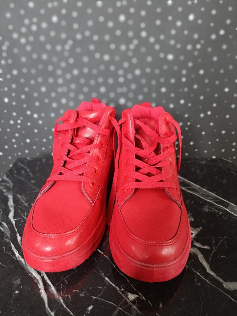 MCTIN Women's Platform Shoes Couples Lace Up High Top Shoes Casual Red Sneakers for Men
