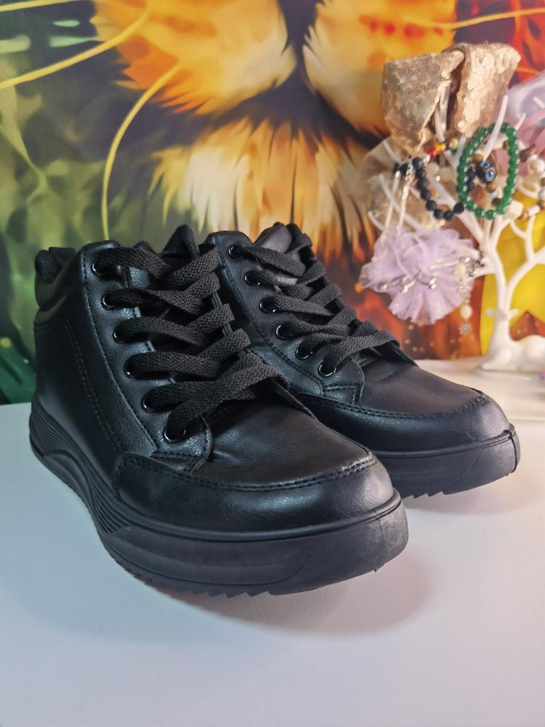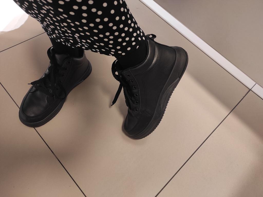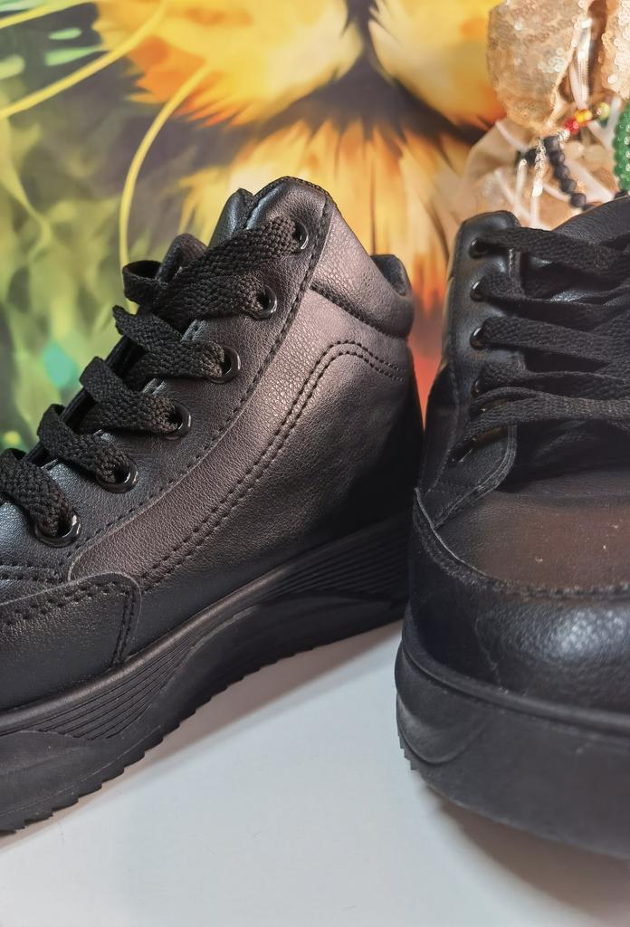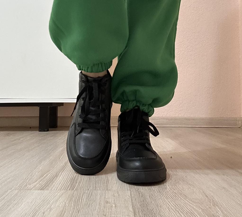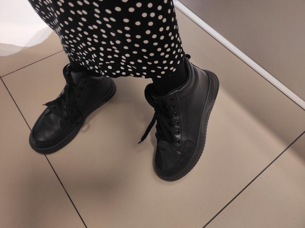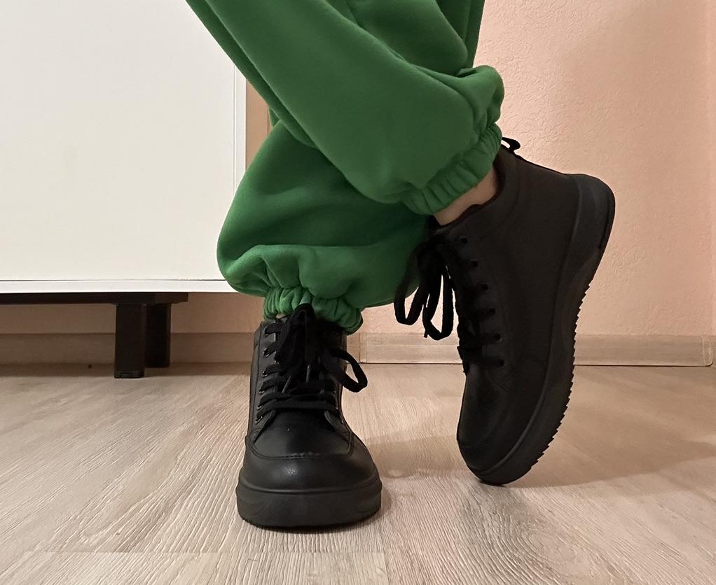 The sneaker model has a rounded silhouette. This makes them look neat. The size range is from 37 to 43 sizes. On my size 36 I took 37. Black color Laced up. if desired, you can tuck them inside or tie a neat bow, as you like. The sneakers are comfortable and soft. My feet feel comfortable in them. Lightweight, comfortable, not felt at all on your feet. There are no complaints about the quality. Sewn neatly, the threads do not stick out. I love wearing sneakers with jeans. Caring for sneakers is very simple: dirt can be easily removed with a soap solution and a soft cloth. Sneakers are comfortable for traveling and hiking.