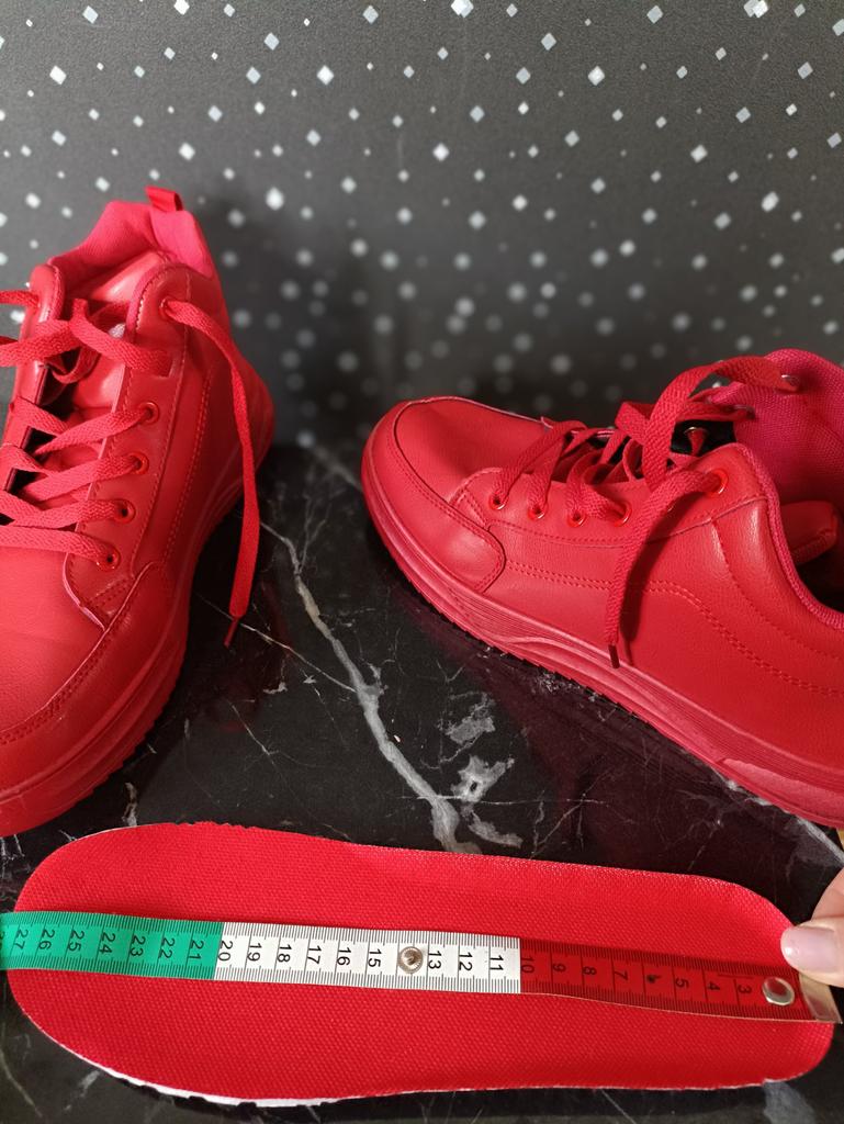 The price corresponds to the quality, the color is not flashy red, the size for a foot is 24cm, I bought 24.5cm, i.e. 39 - I'm comfortable.