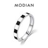 Modian 925 Sterling Silver Black And White Enamel Trendy Ring For Women Unique Design Rings Fine Jewelry Party Vacation Gift