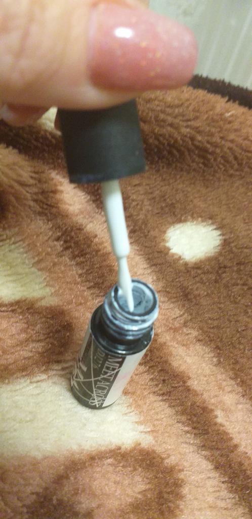 Good varnish. Moderately thick. Easy to apply designs, does not spread. Convenient thin brush