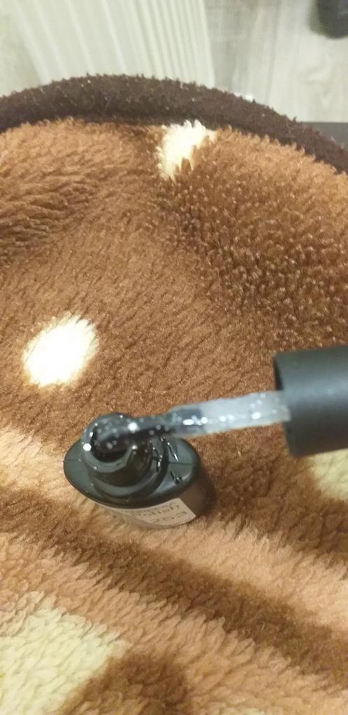 Very interesting product: it goes on the varnish in even lines, a beautiful thin brush in the bottle. You can do any design. Color - the same as in the catalog.