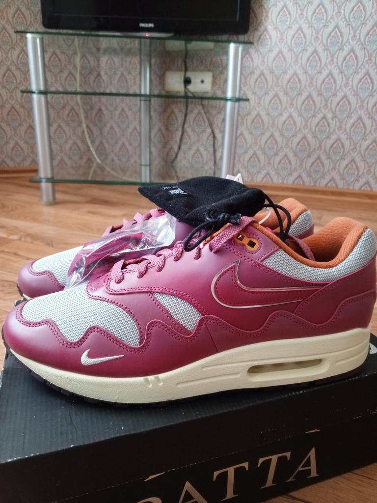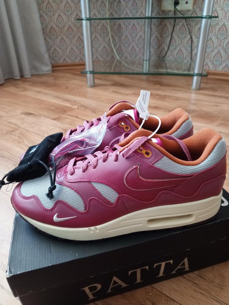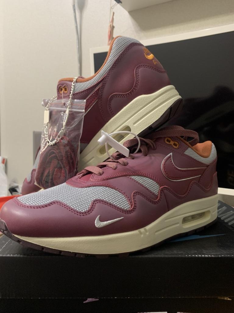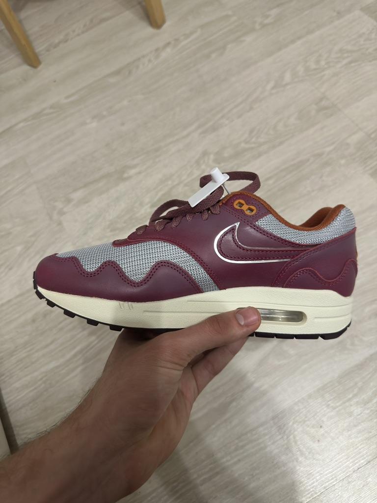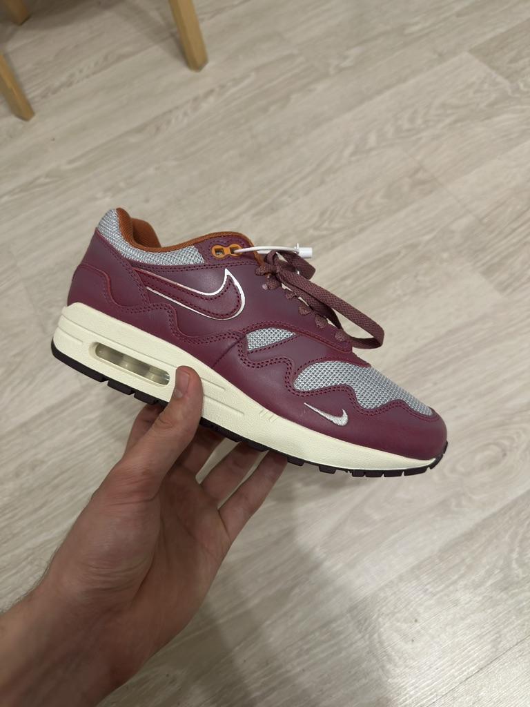 Patta X Nike Air Max 1 Rush Maroon Unisex Sneakers Red Metallic-Silver DO9549-001