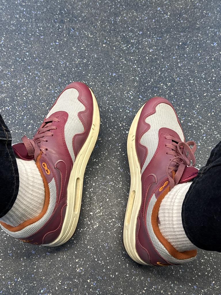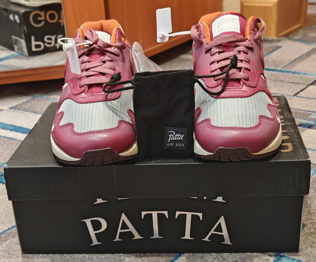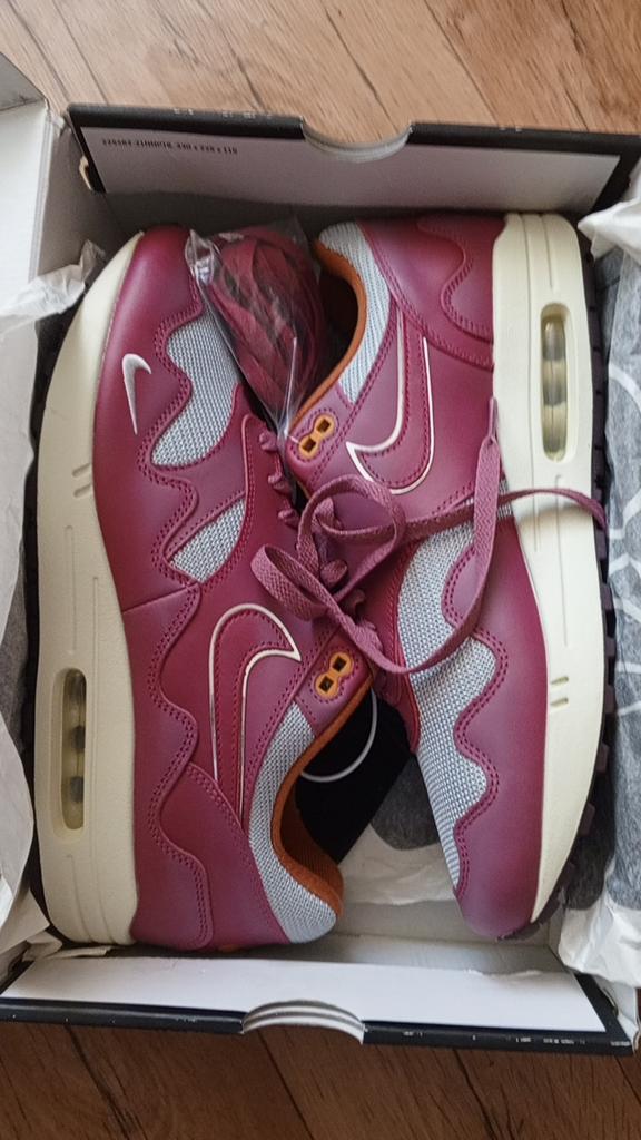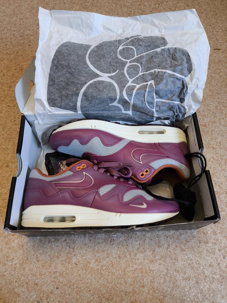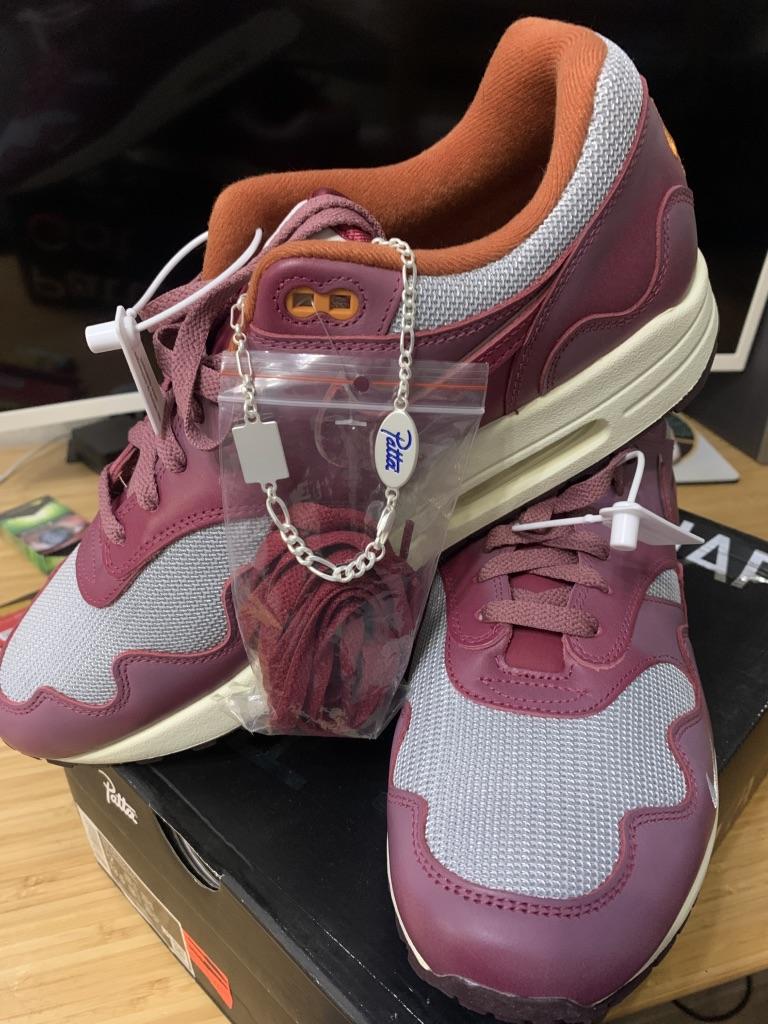 Patta X Nike Air Max 1 Rush Maroon Unisex Sneakers Red Metallic-Silver DO9549-001