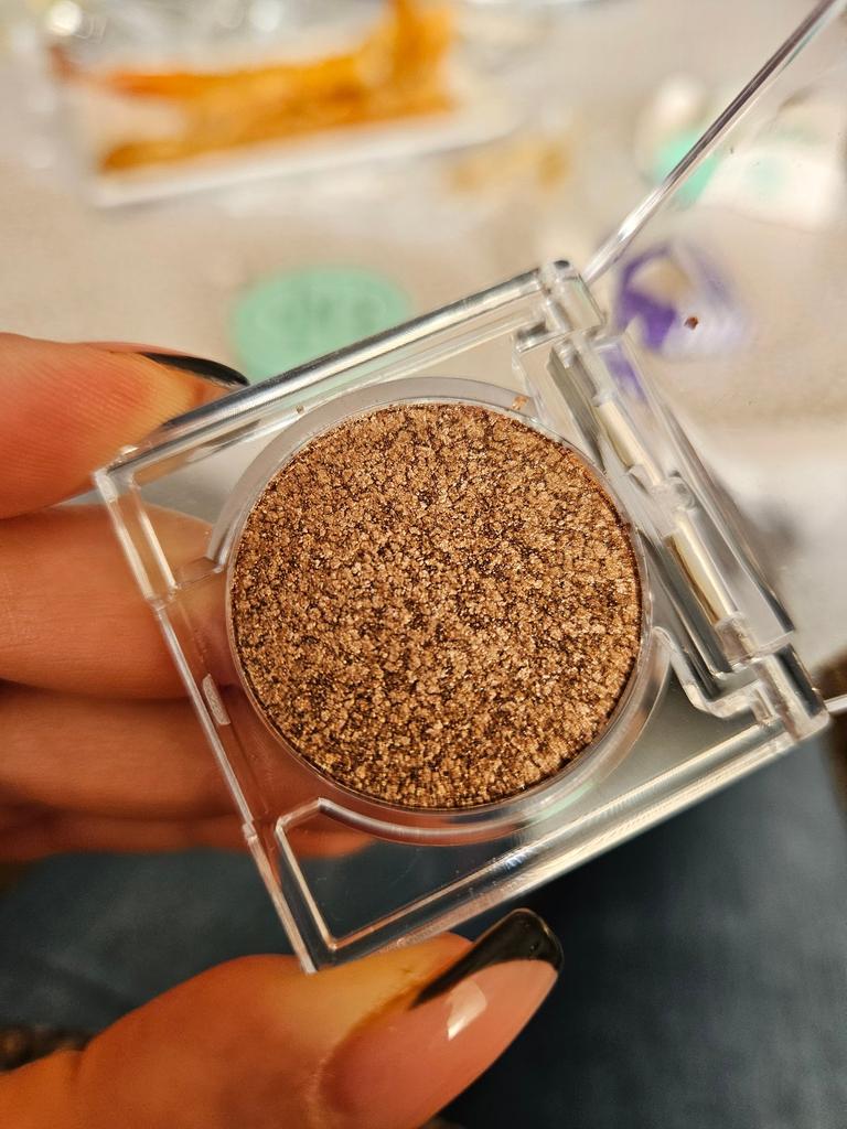 Shadows with sparkles for makeup. I ordered this gentle color to add a glow to my makeup. A small, convenient palette of one color that you can take with you anywhere. It came in a sealed package in a regular package. Everything is intact and undamaged. The seller has two colors to choose from. I chose a more natural beige color. In use, everything is very easy to apply either in one color, it will just be shiny or highlight what you need. I apply matte shadows on top of my base makeup for a glow or just highlight the corners of my eyes. It shines beautifully in artificial and daylight. I was completely satisfied with this palette. I am very satisfied with my order. Delivery to Mykolaiv takes a month. I recommend the product and the seller.