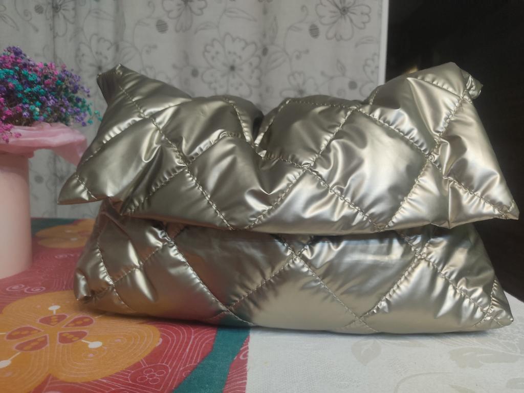Not very neatly sewn, but that's not bad - the bag has an unpleasant smell. I hung it on the balcony for now, maybe it will evaporate. This is a beautiful color. It's a pity I won't be able to wear it yet.