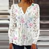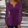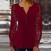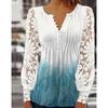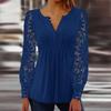 Spring and Autumn Women's Blouse Fashion Lace Sleeve Pressure Pleat Solid Color Button Long Sleeve Top